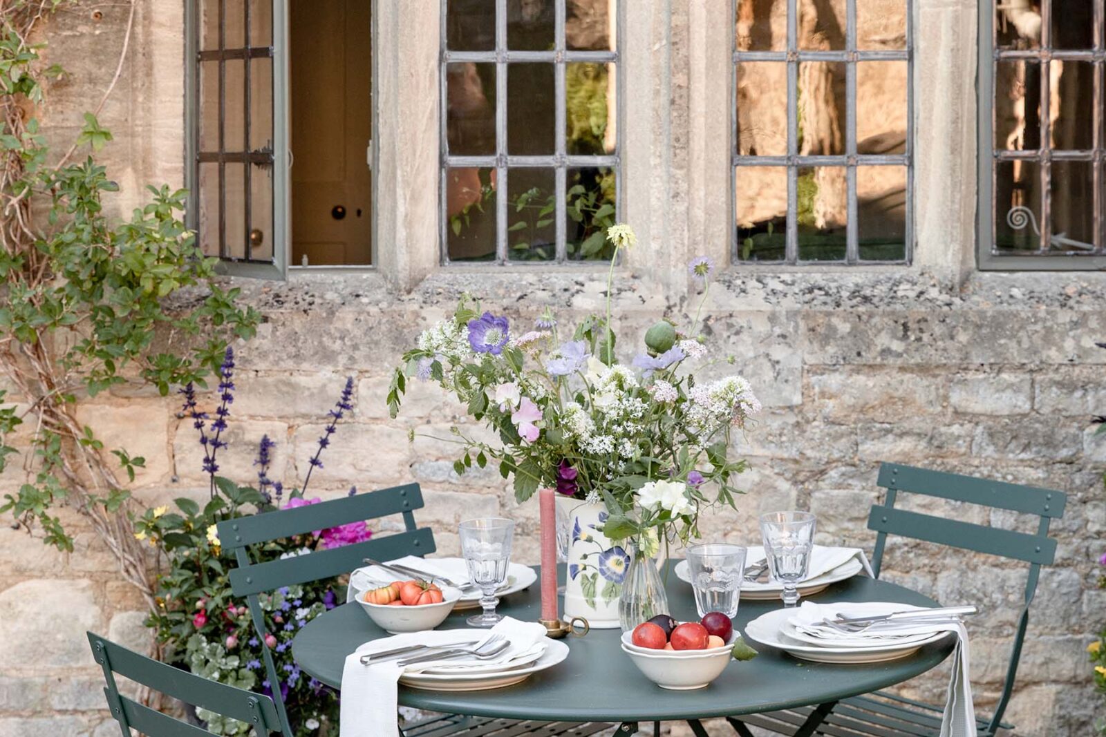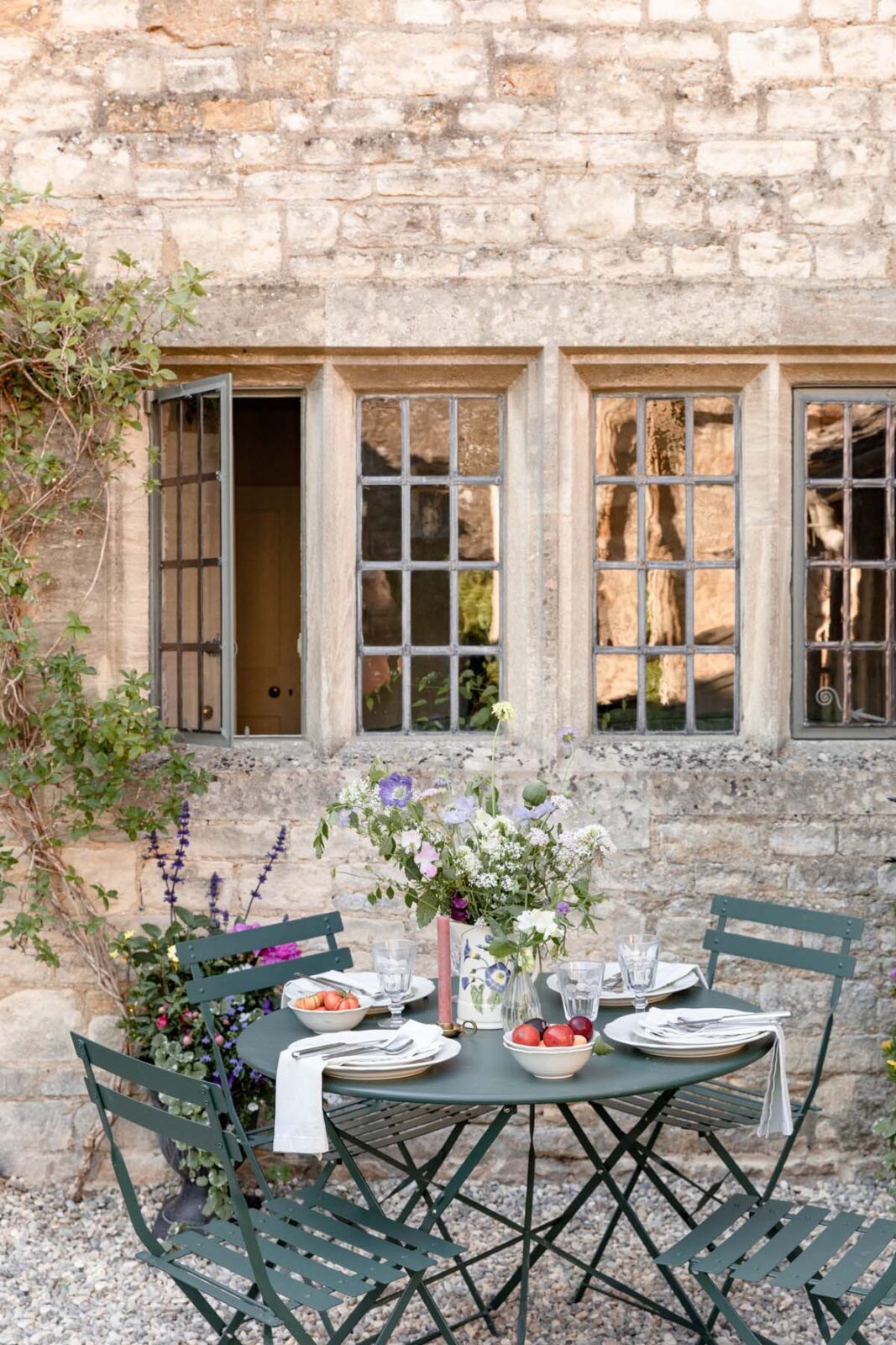 At the front of the property and overlooking the Square’s courtyard, is a south-facing outdoor dining set up for four enveloped by garden blooms. The perfect spot for a chilled glass of rosé at golden hour or your morning coffee ritual.