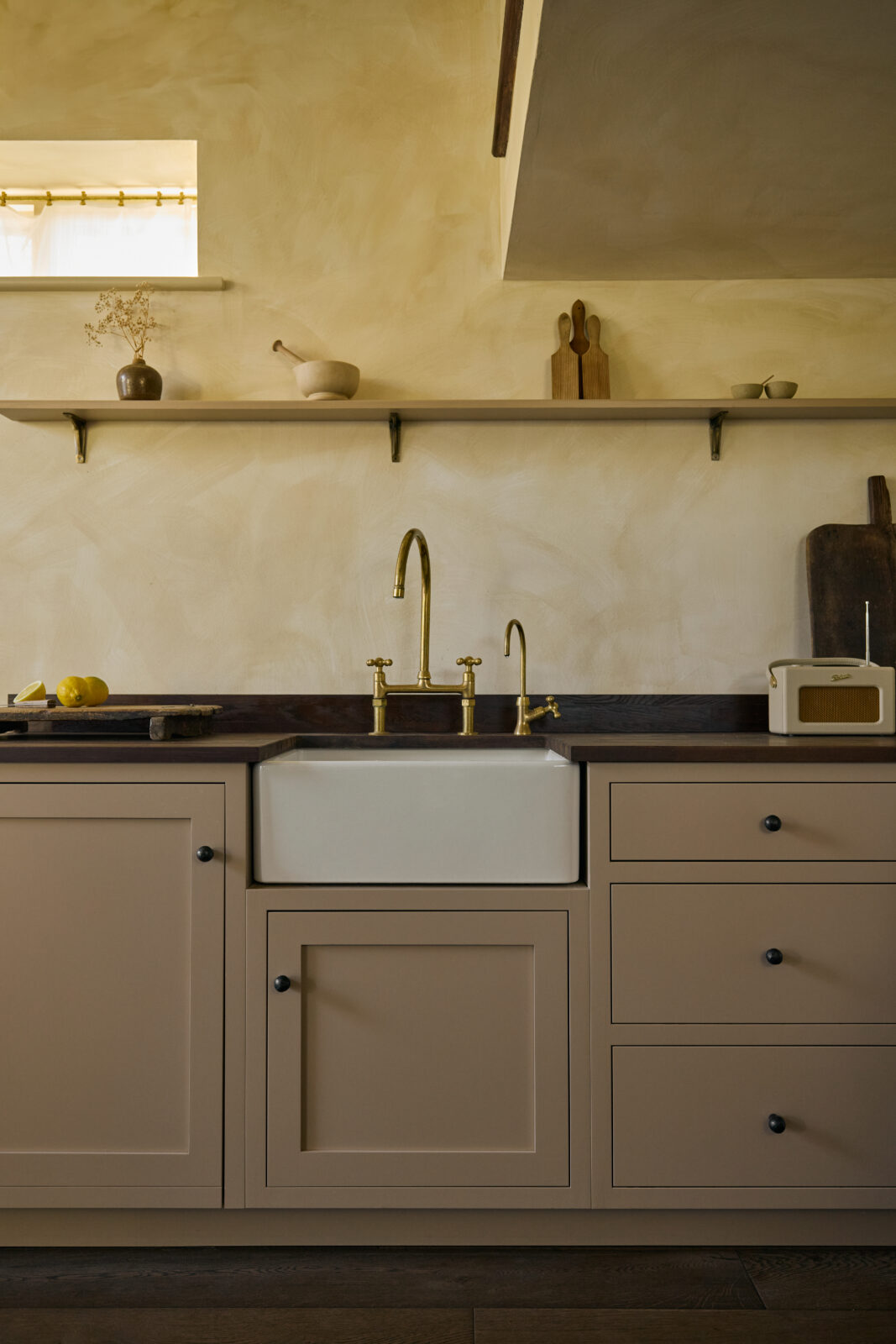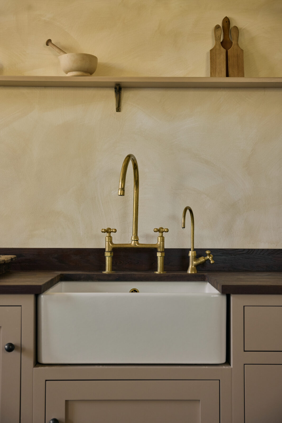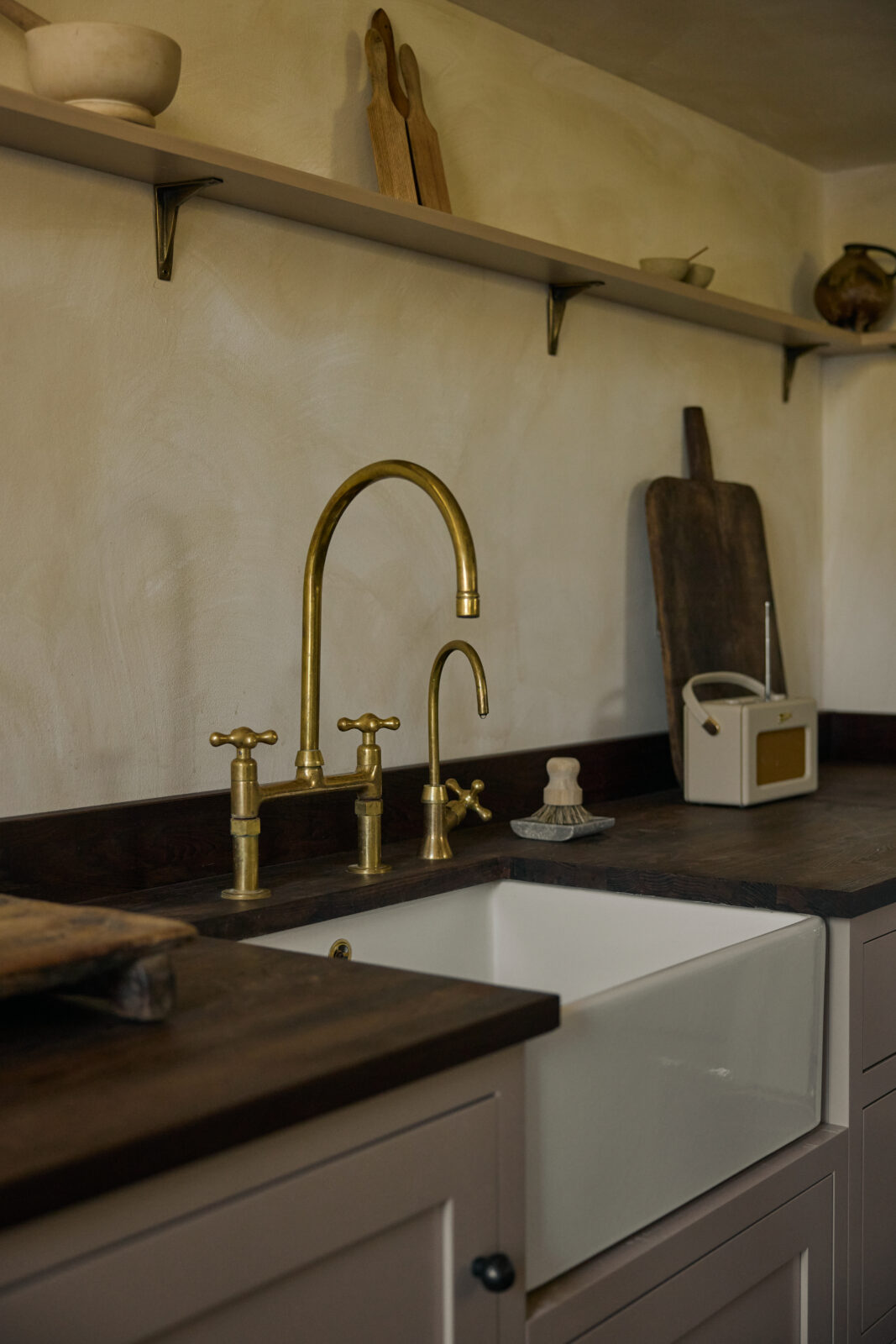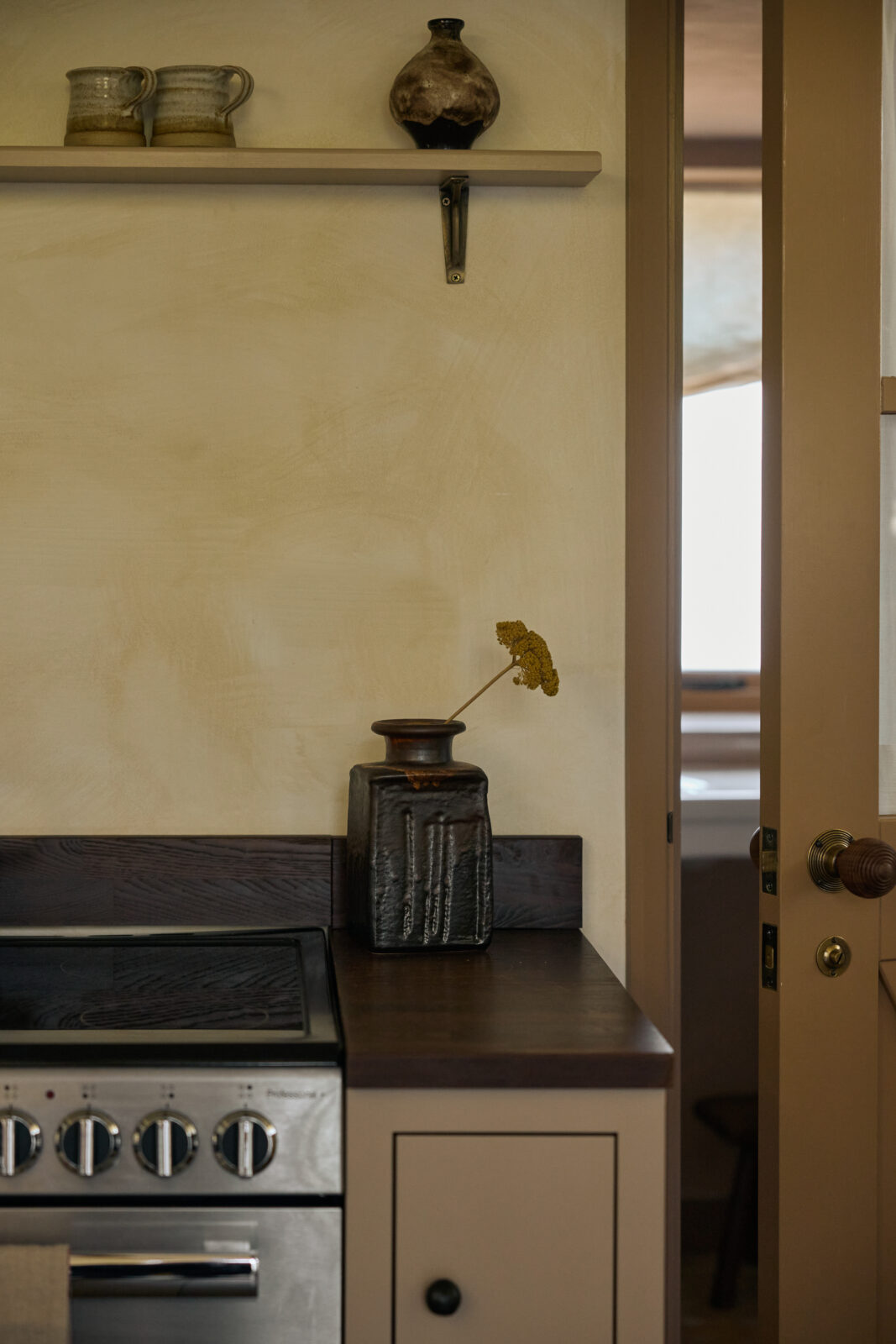 The bedroom sits on the upper mezzanine level and is the epitome of comfortable cosiness. Beautiful bedding and original beams create a calm haven-like space. The bathroom is arguably the showstopper feature of the whole property, with an emperor soaking tub and a sleek wet room – a space with spa-like zen.