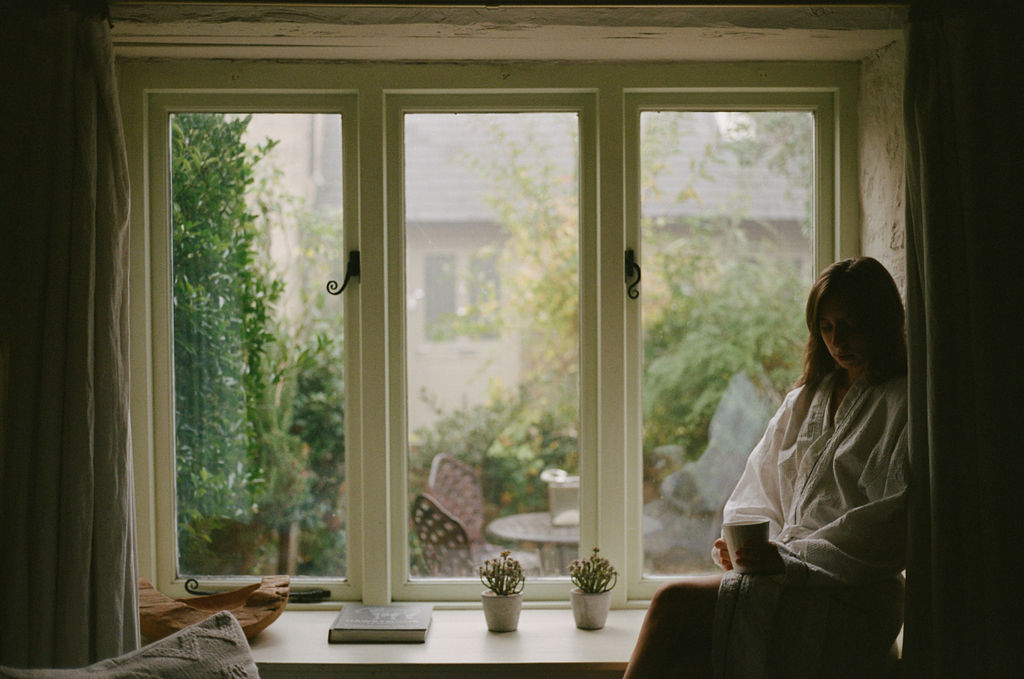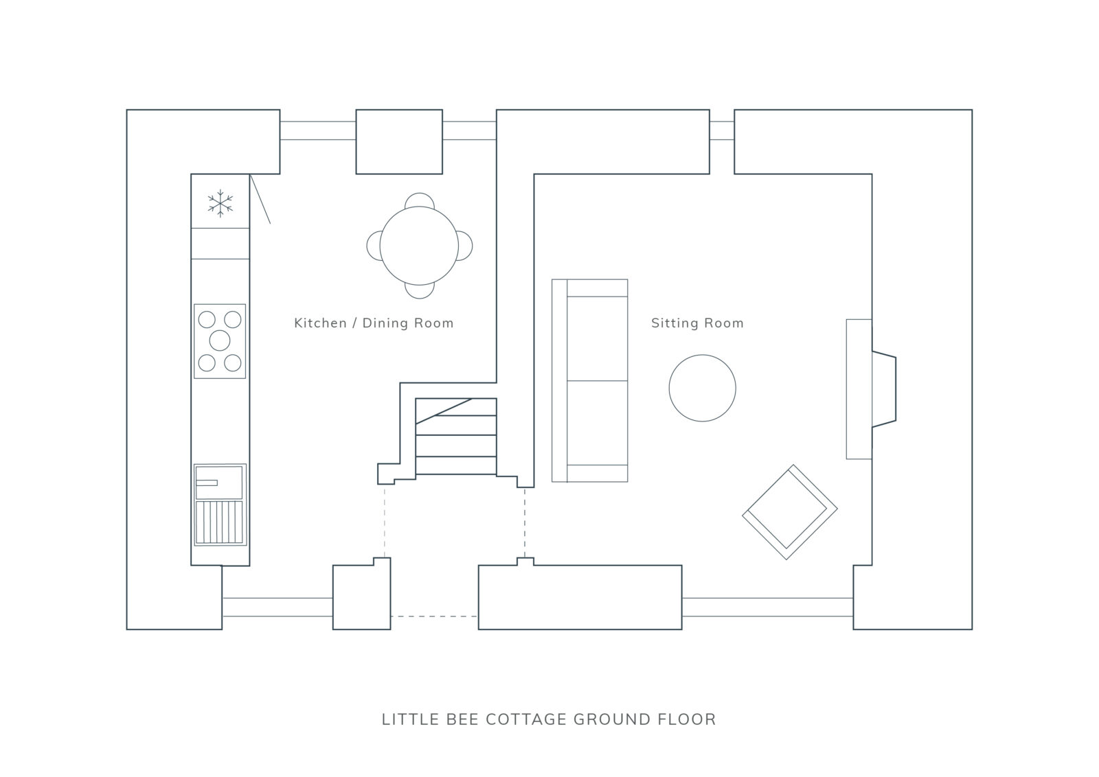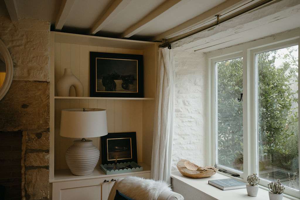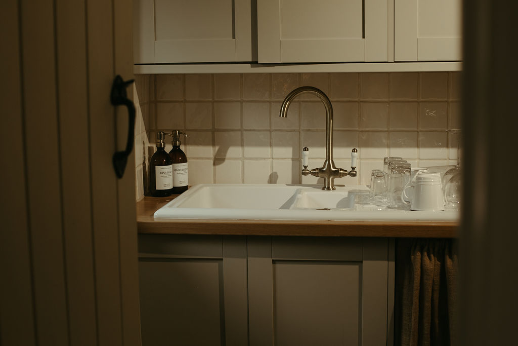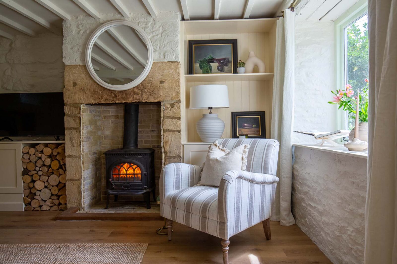 Step inside and discover the snug sitting room with its original exposed beams, log burner and miniature stained glass window. The kitchen is fully equipped, and we love the sage green panelled walls and chic farmhouse features. There’s a circular dining table for brunching and nights in, seating up to 4 people.