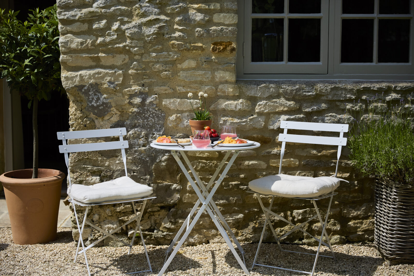 There’s a pretty landscaped garden with terracotta-potted plants and a gravel path to your escape’s front door. There is a small outdoor dining set up for two, which makes for the perfect sun trap for morning coffees, plus there are plenty of bosky country walks from the doorstep.