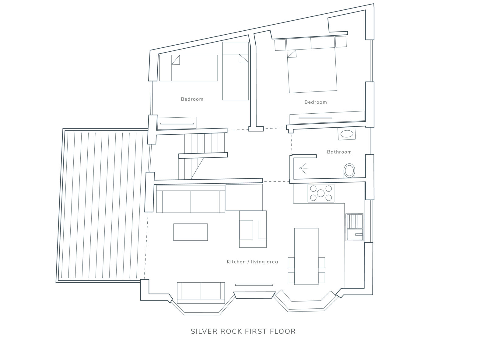 Due to its central location, there is no private parking at Silver Rock but the main public car park is close. It’s worth noting that the private road this property sits on is very narrow with tight corners but there are wider drop off points a couple of minutes walk away from the property.
