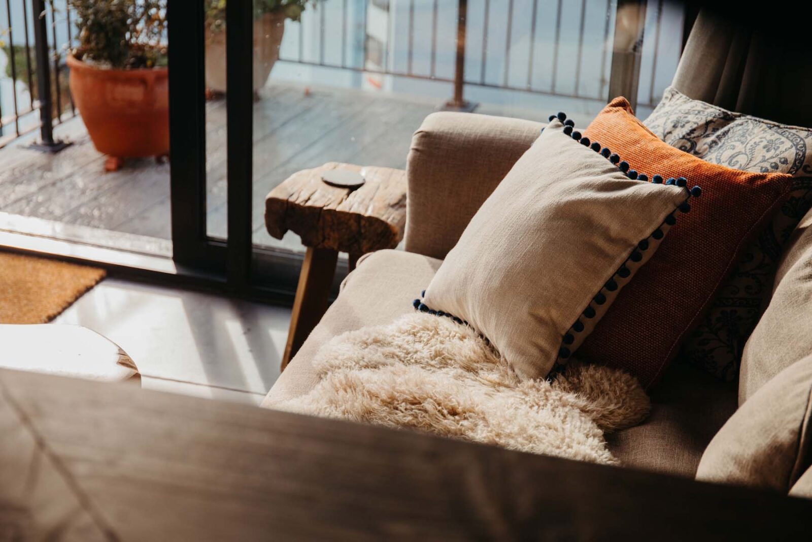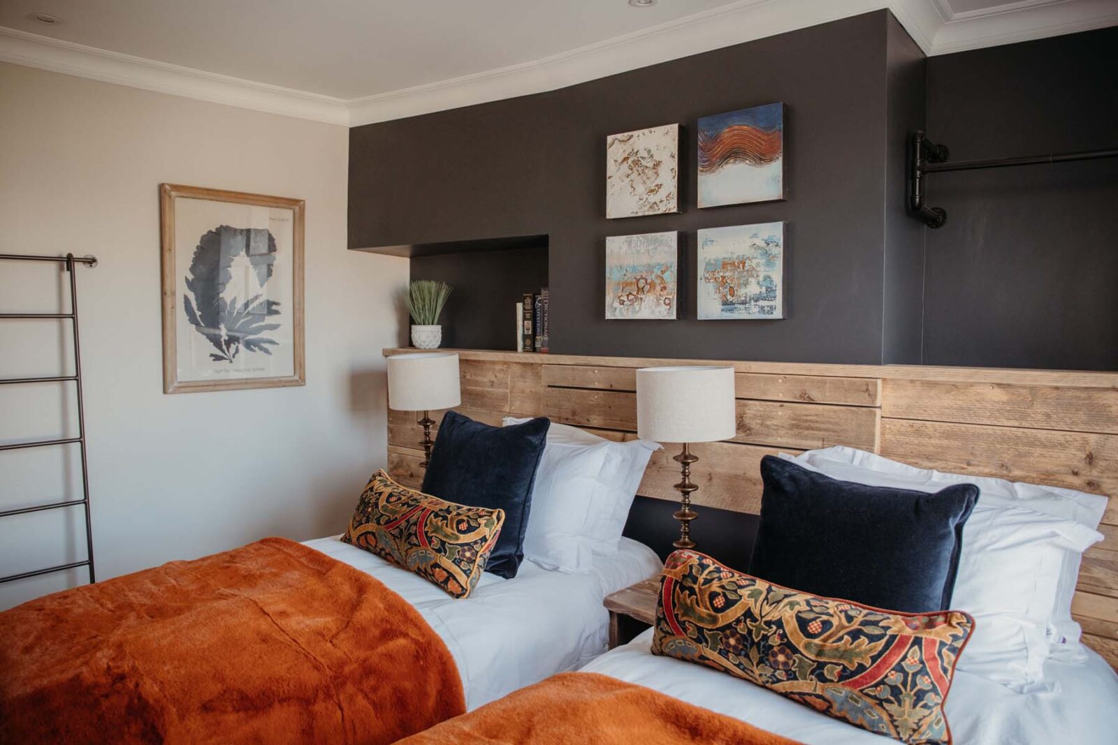 Enter this Cornish hideaway from the courtyard garden via a ground floor hallway, from where you head straight upstairs and are met with vast views across Fowey, the estuary and beyond. Interiors are snug and furnished with decor that nods to the property’s Cornish roots – expect knotted rope light features and bespoke wooden headboards.