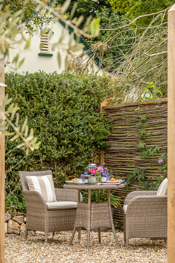 Beyond the French doors from the bedroom, you have The Bakery’s small but sweet enclosed gravel garden area with a table and chairs, lined with potted plants and fragrant herbs. Just a few steps from your bedside, this makes for the perfect sun dappled morning breakfast post-slumber.