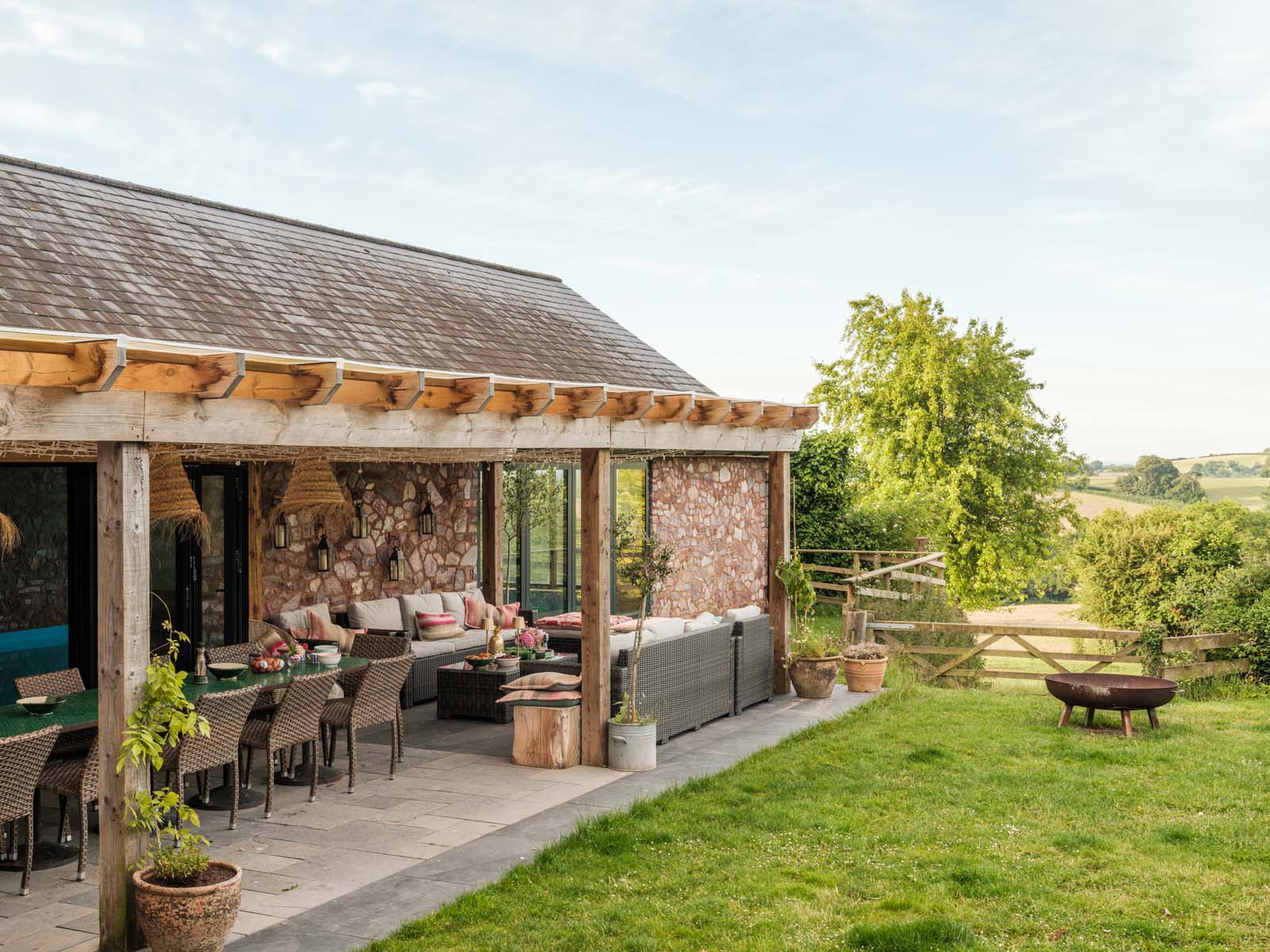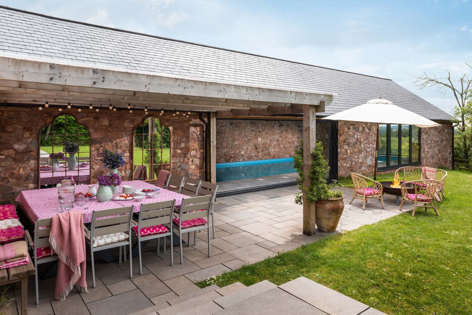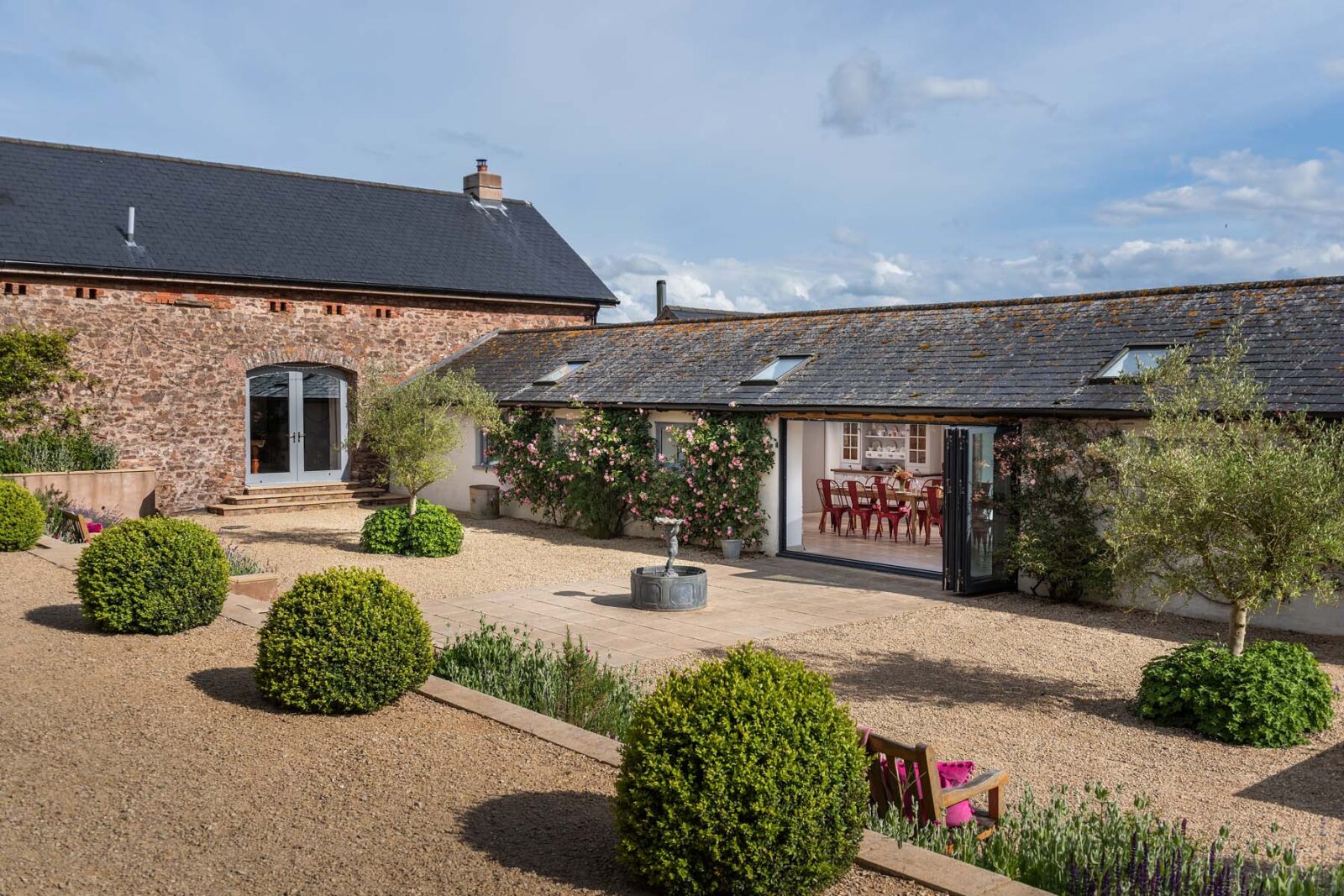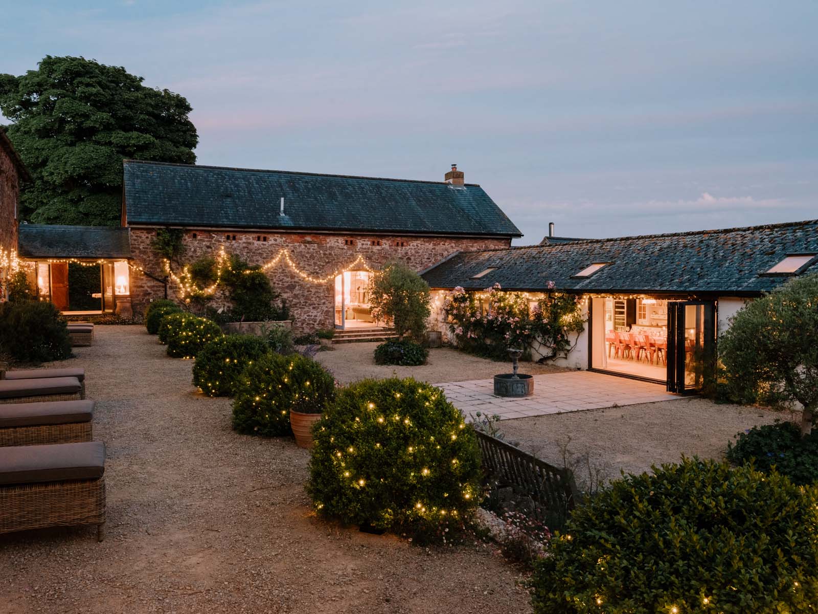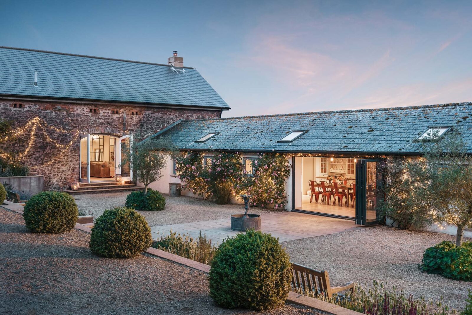 Sitting within 100 acres of private land, the outside areas at The Cider Press are a love letter to summer days and alfresco soirees. Whether it’s enjoying long leisurely BBQ lunches in the pretty courtyard dotted with roses and olive trees, starlit suppers accompanied by cosy blankets, twinkling fairy lights and a fire pit, or battling out a game of tennis on the astro court – this is the ultimate escape for switching off and spending time with family and friends.