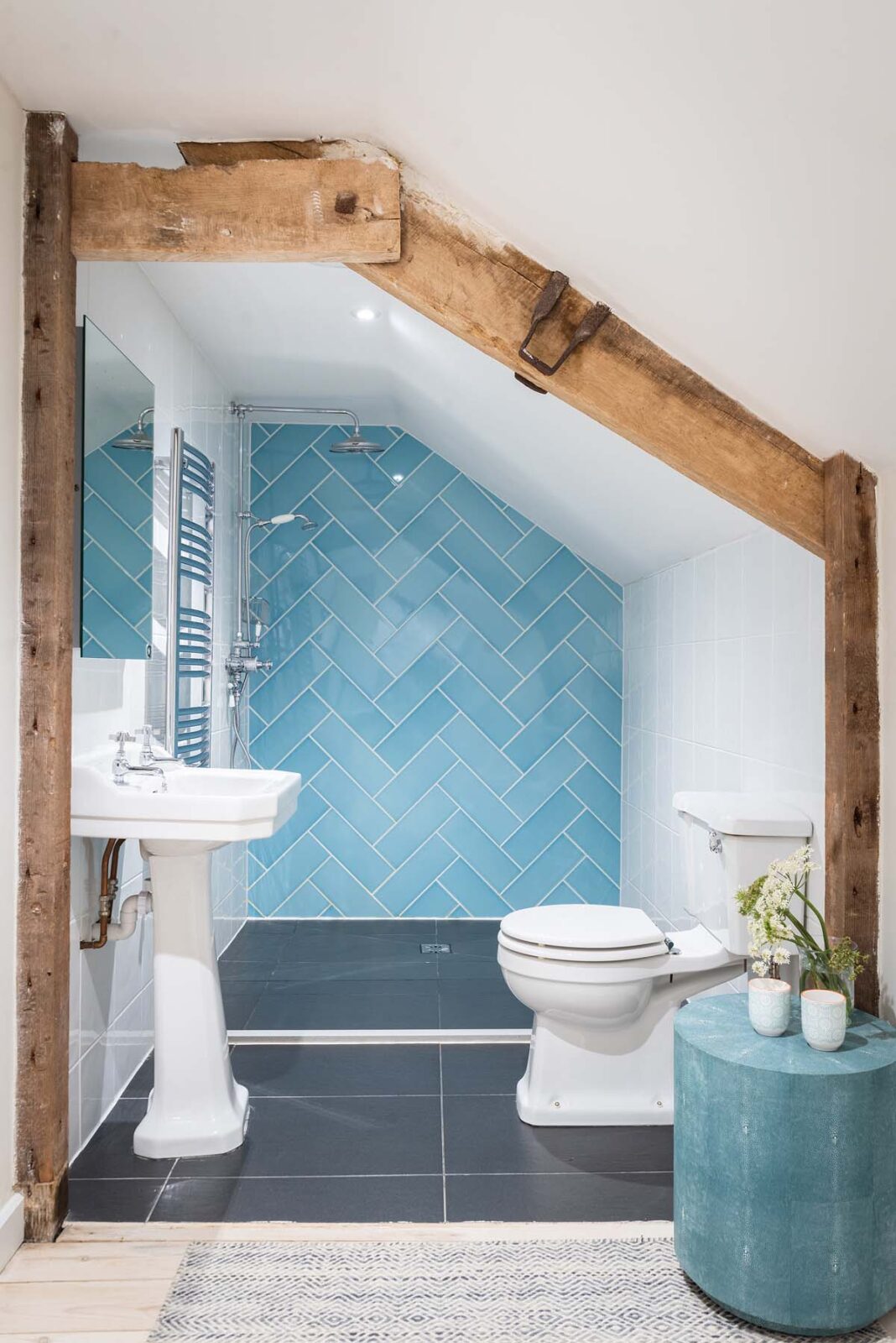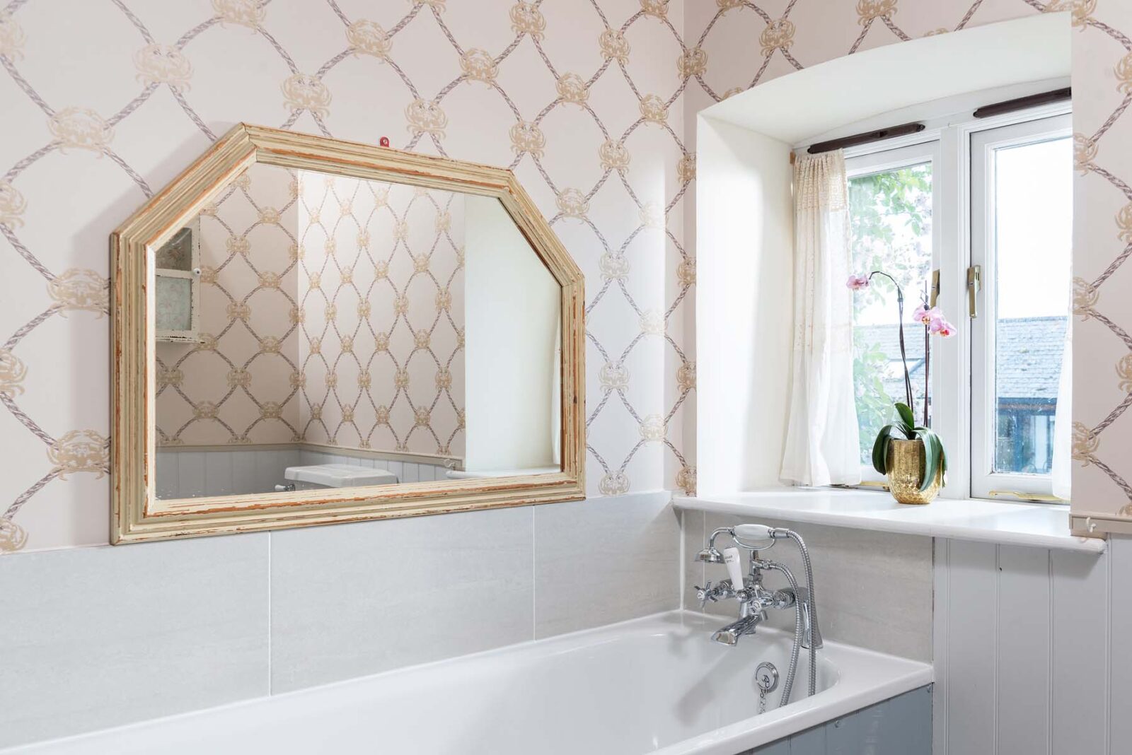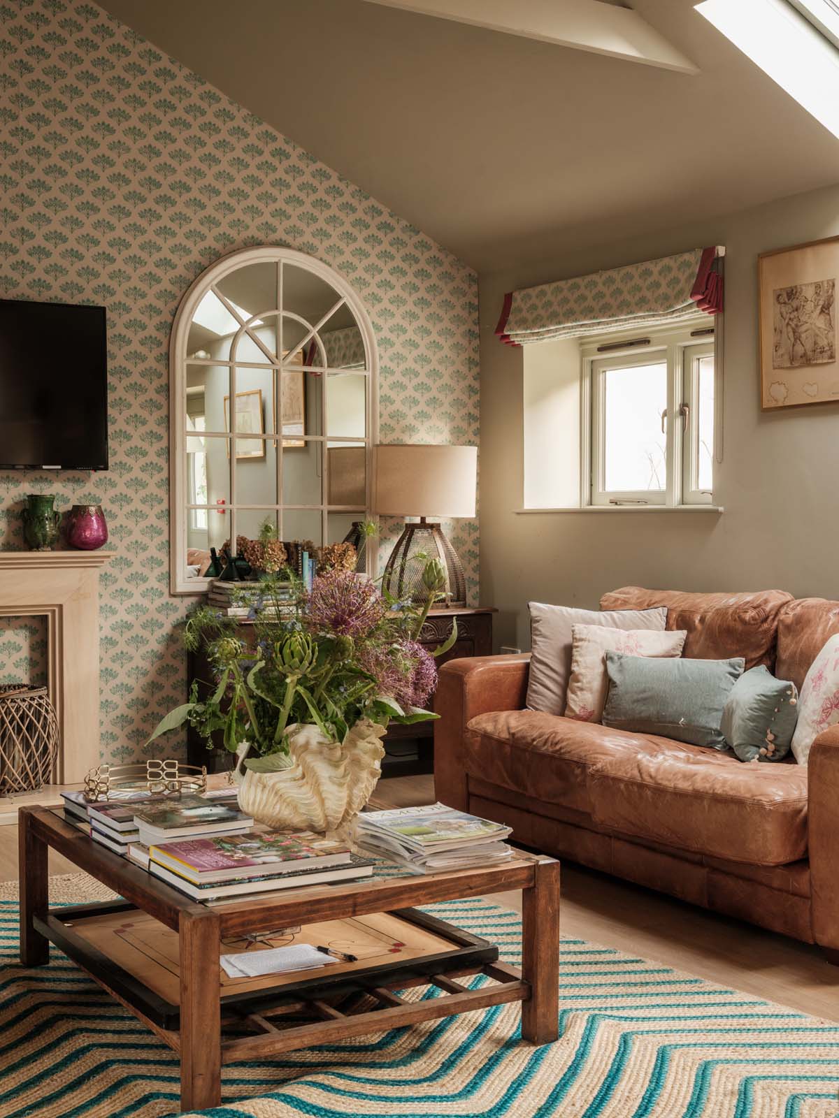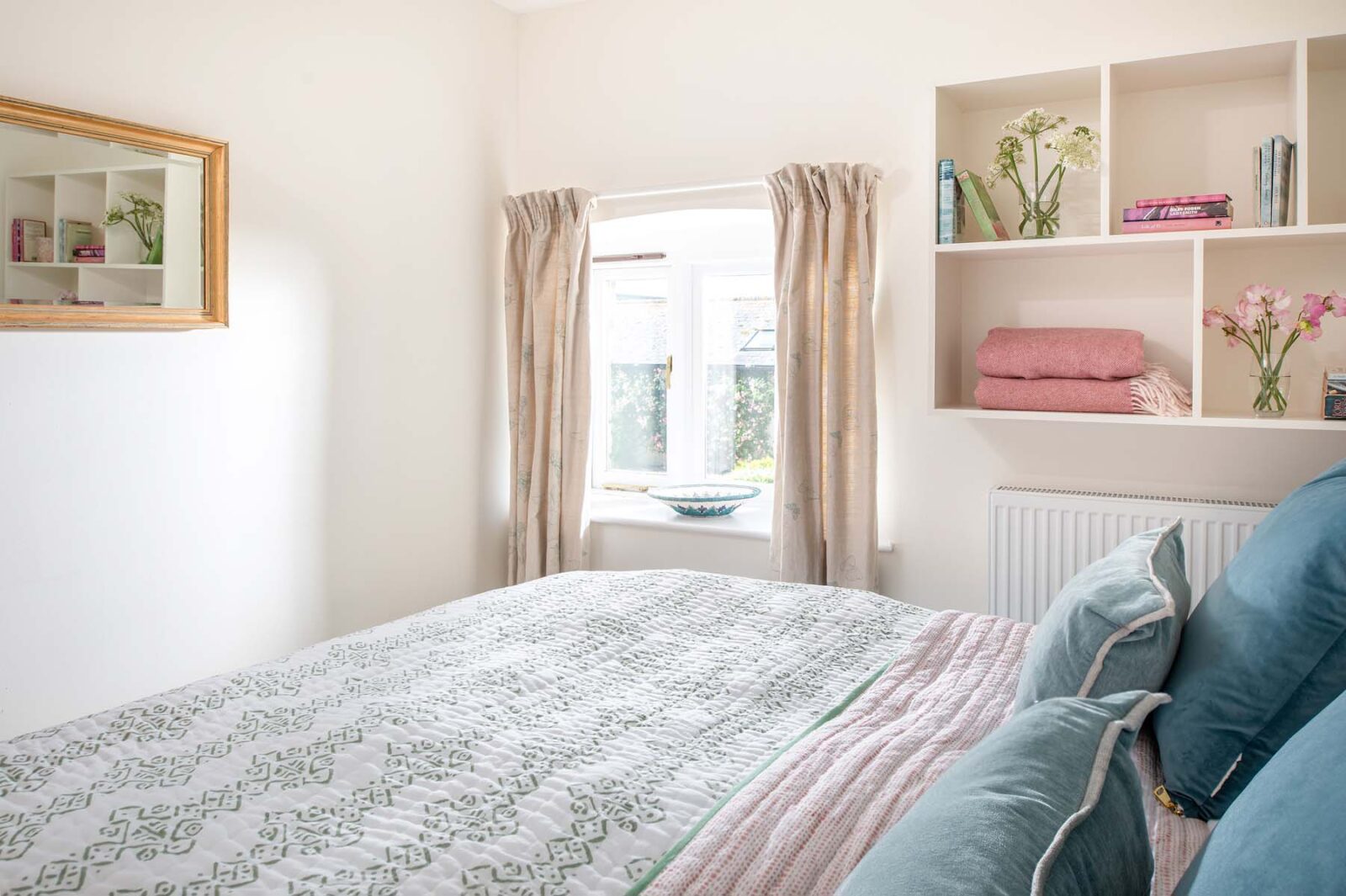 Entertaining spaces don’t come much better than these. The fully-equipped kitchen and spacious dining area has floor to ceiling windows, bi-fold doors and a long dining table overlooking the dreamlike garden and grounds beyond. Expect colourful reclaimed and upcycled furnishings, striking restored features and uninterrupted countryside vistas.