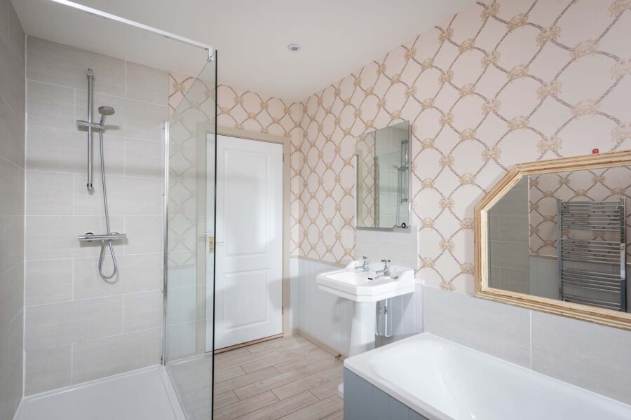 On the ground floor you’ll find four bedrooms with two large, modern shared bathrooms. Upstairs, there are five bedrooms, three with en-suites and two with a shared bathroom. One bedroom is set apart, tucked away atop a secret staircase.