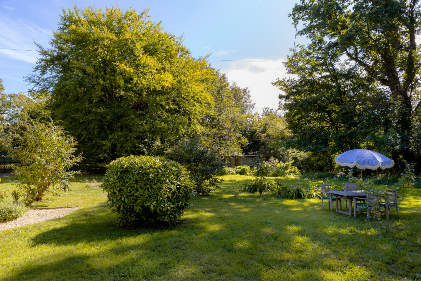 There’s plenty of outside space at The Lodge, in keeping with the countryside surroundings. Enjoy a meal al-fresco at the garden table anchored by a timeless umbrella, or simply relax on the lawn and admire the unique charm of the house. The surrounding fields, stately homes and neighbouring cricket pitch add to the bucolic tone.
