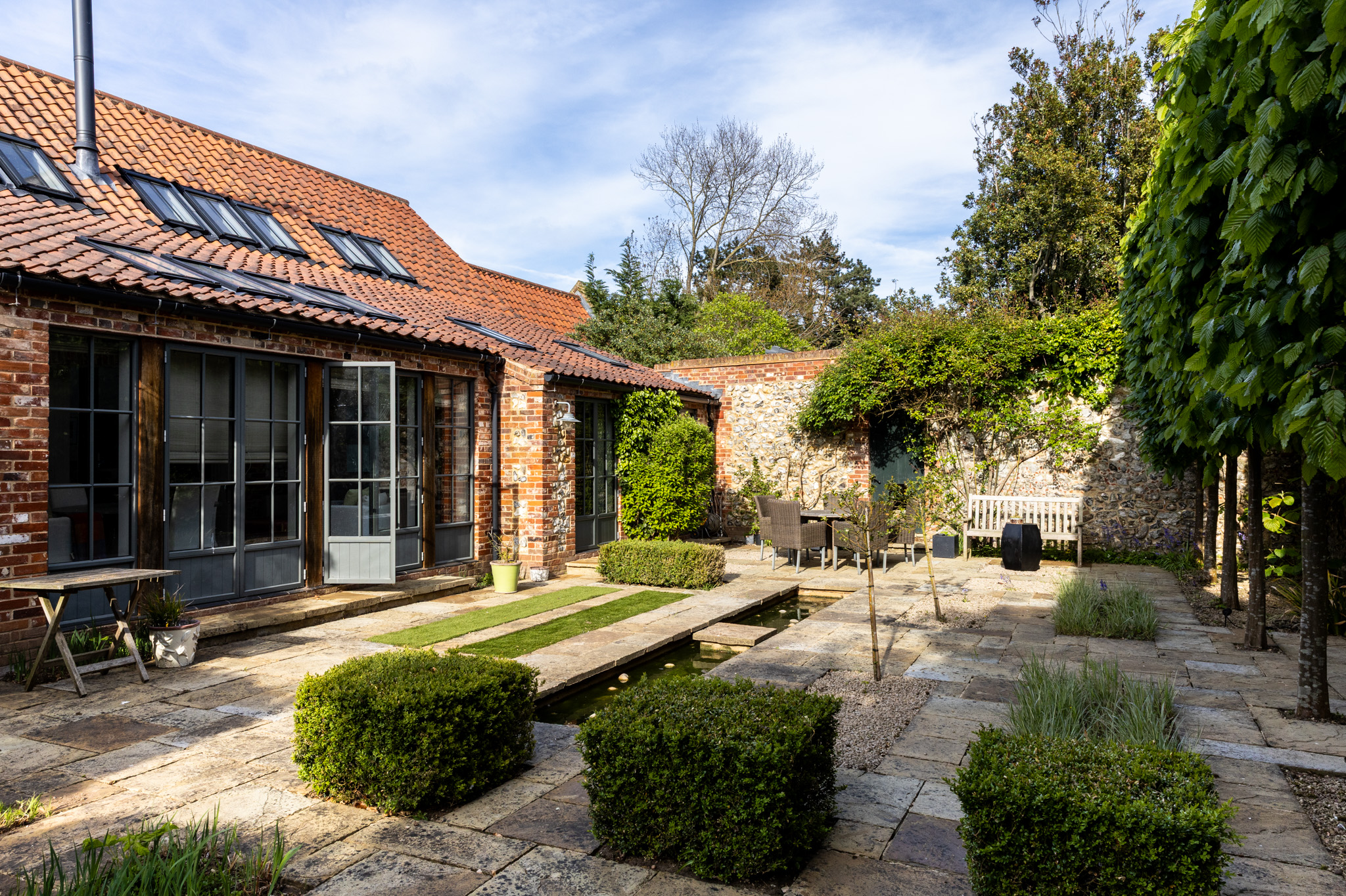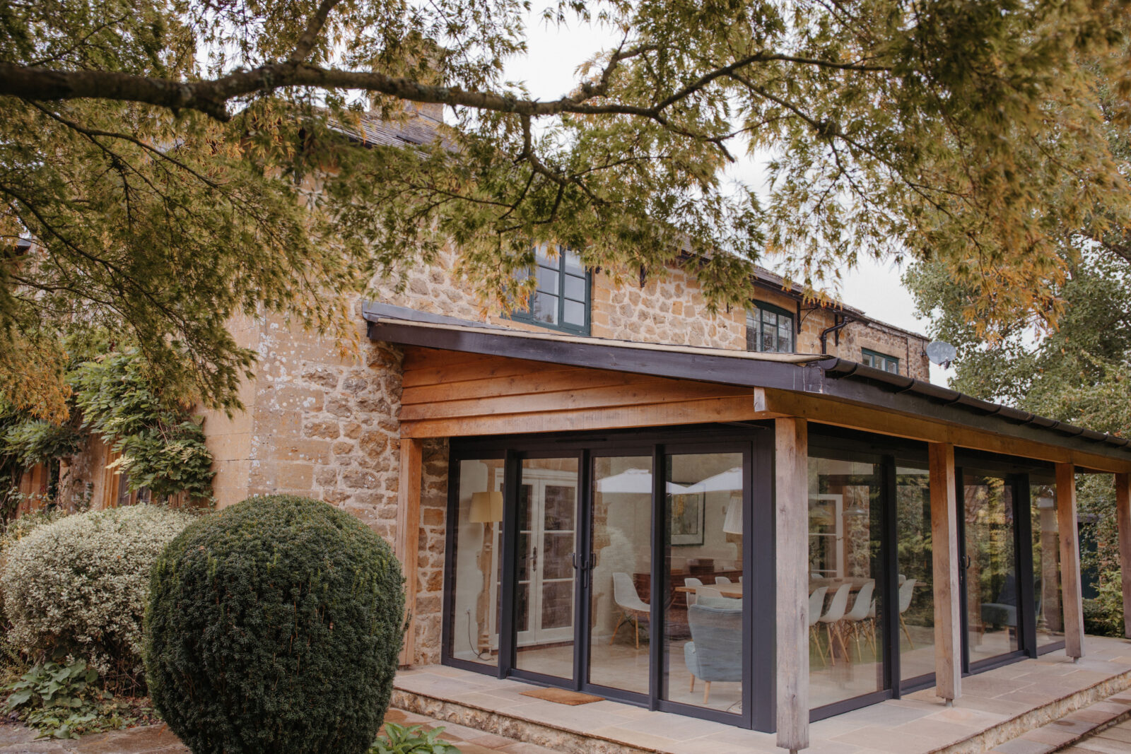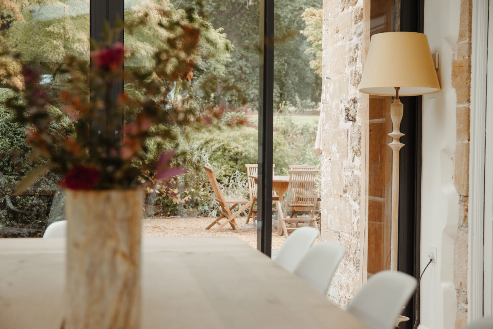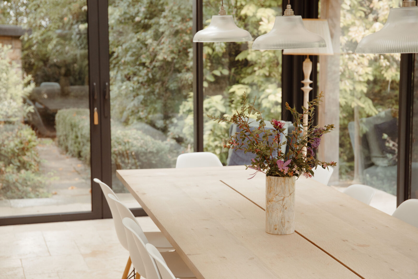The garden room is a main feature which overlooks the stunning garden. It has a large 16 seater dining table perfect for entertaining.
