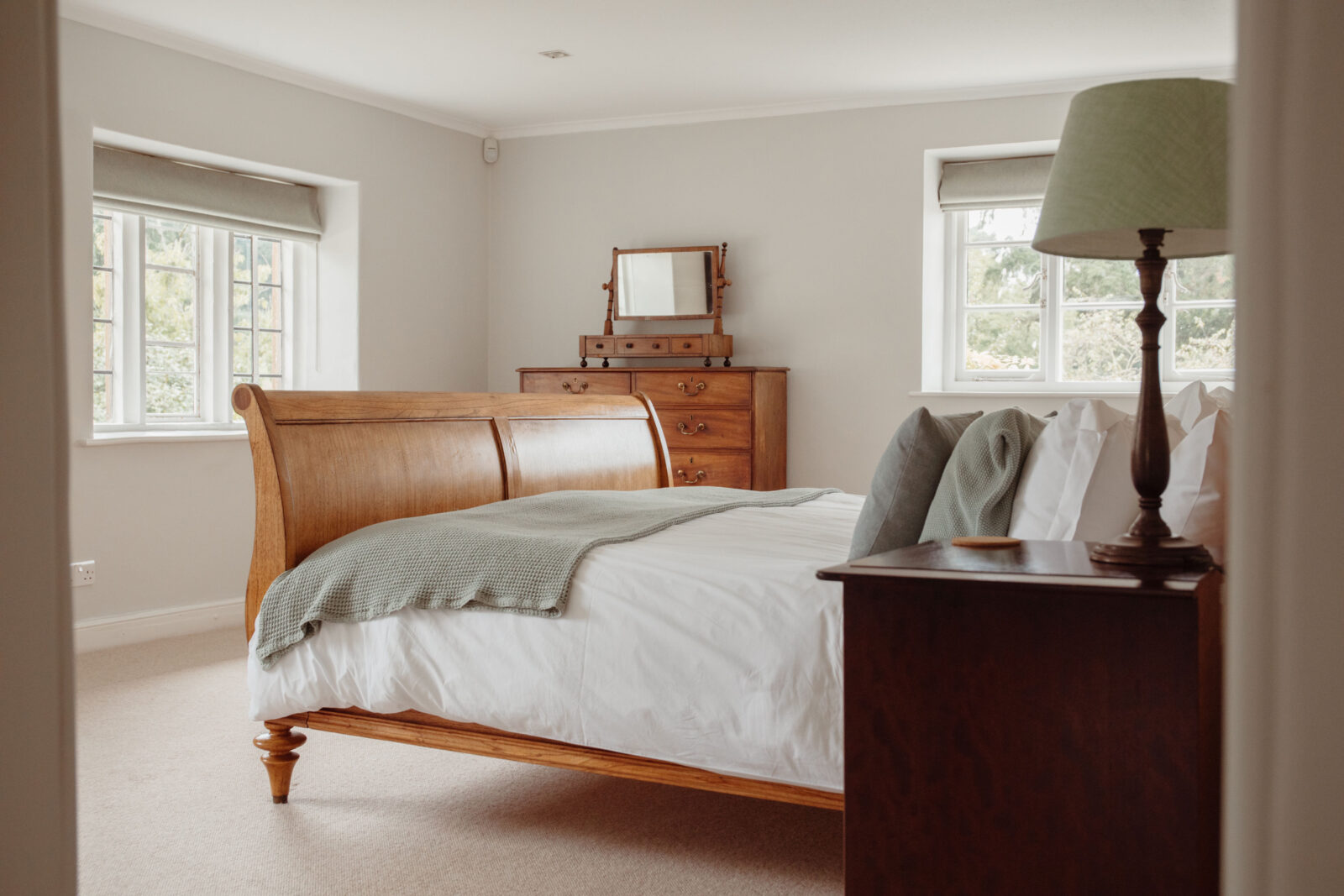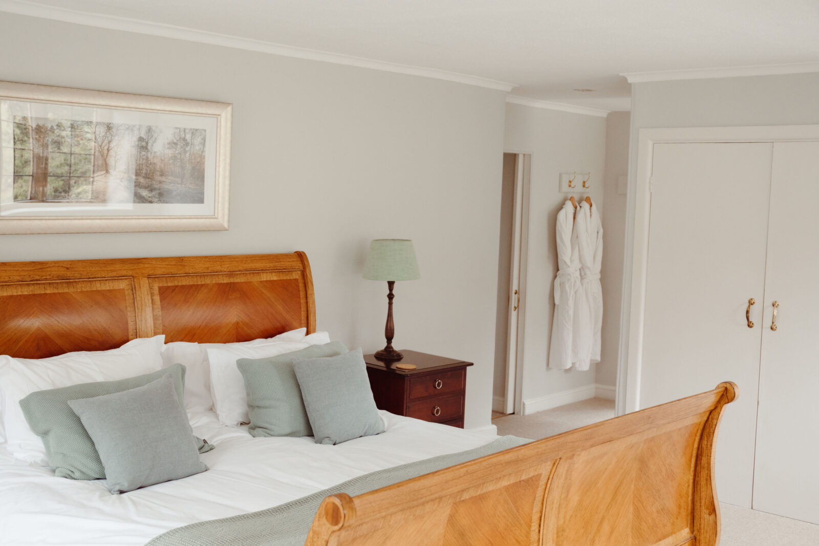 The main house has four bedrooms. The Master has a super-King wooden sleigh bed and ensuite bathroom.