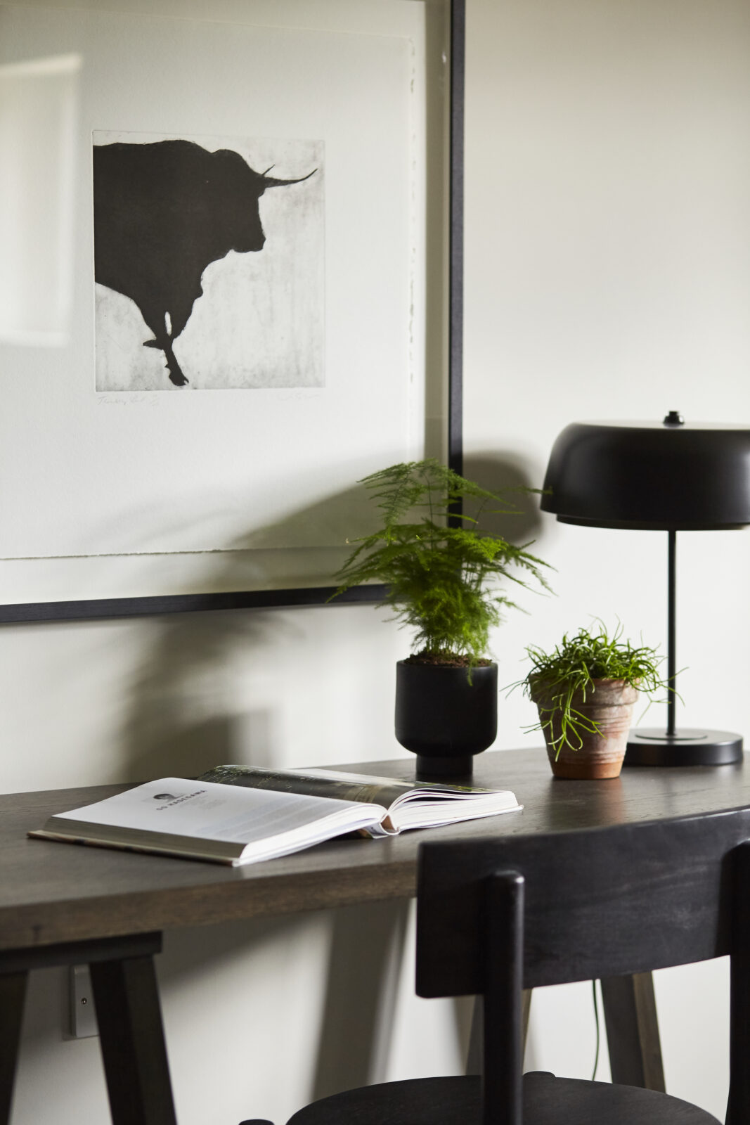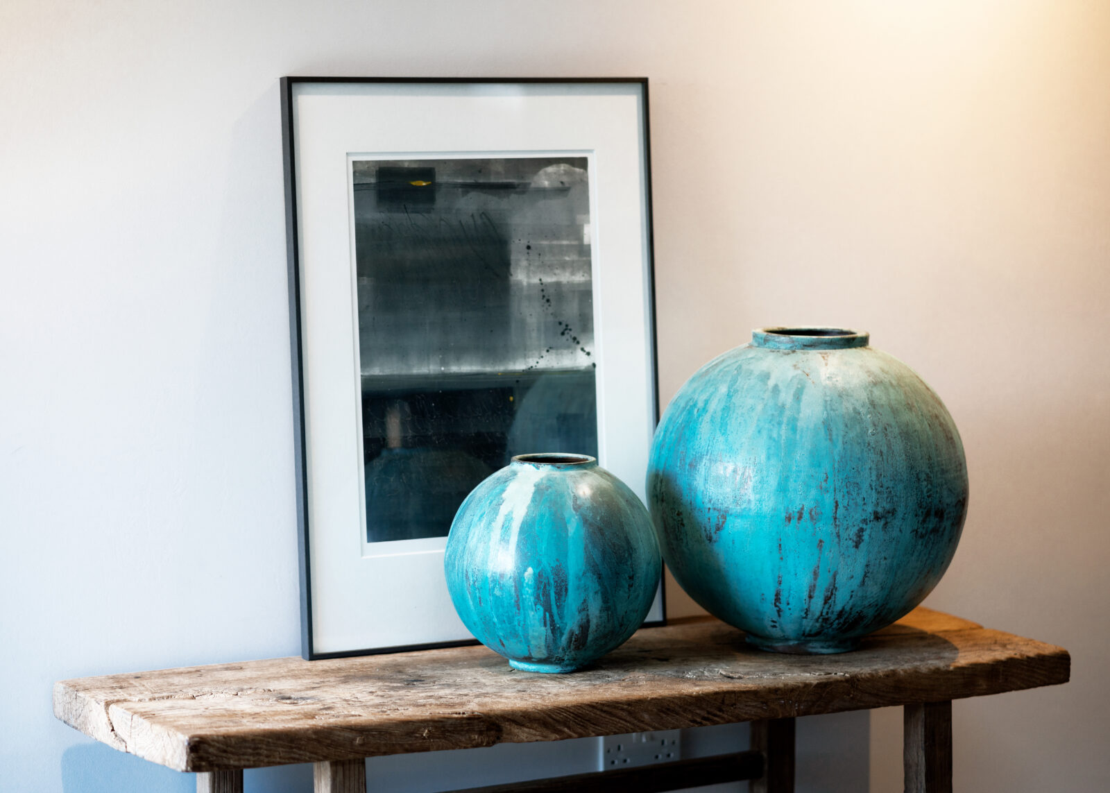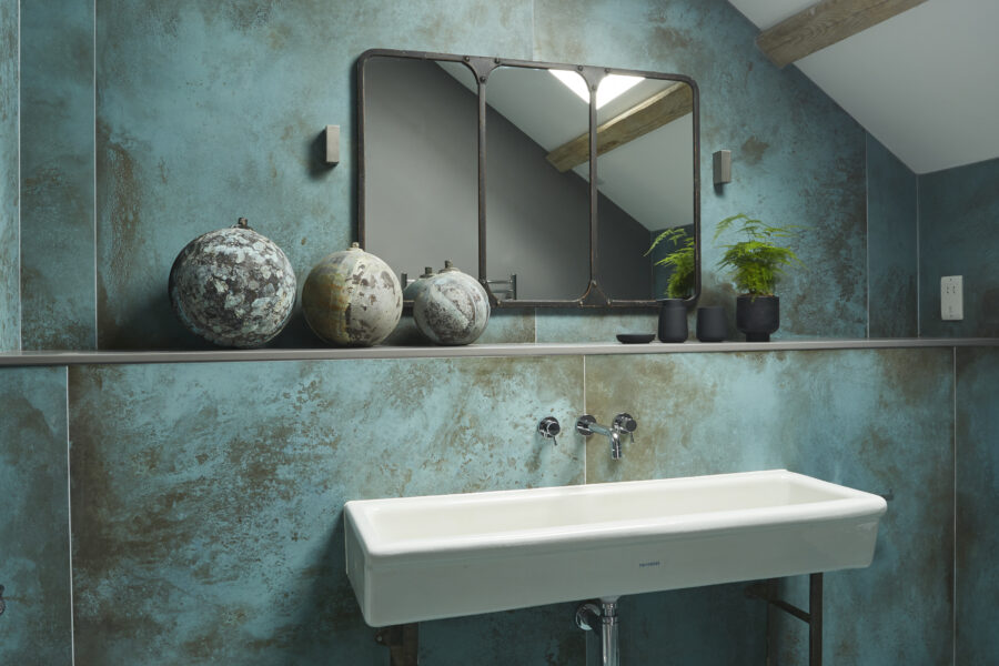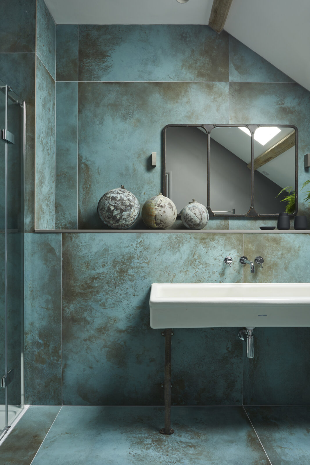 The wonderfully dramatic dining area makes for the ideal spot to host a dinner party alongside the large kitchen island which sits beneath hanging lights. The Stables is very much an artist’s paradise with walls adorned with artwork and photography that complement the greys and creams of the interior décor.