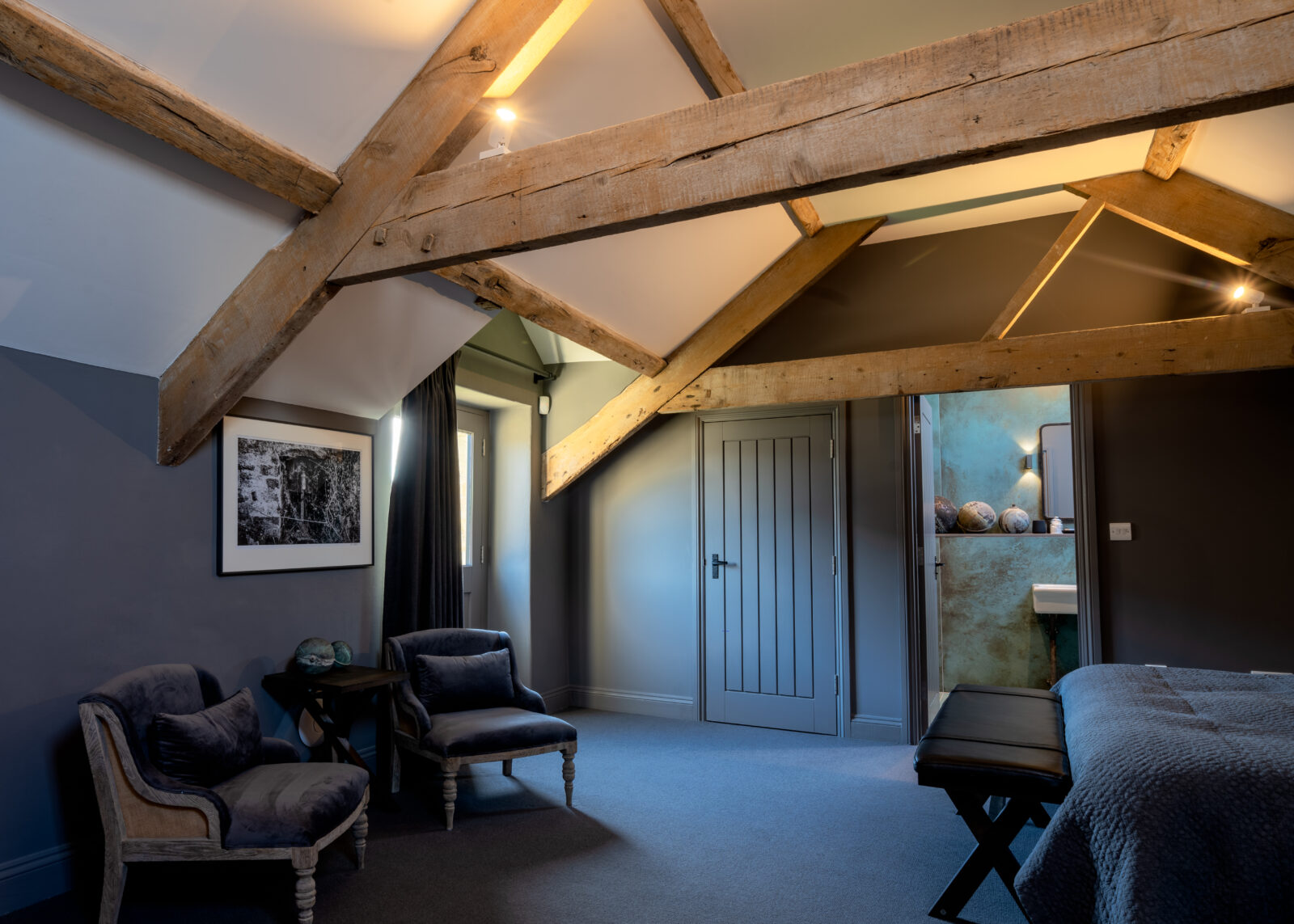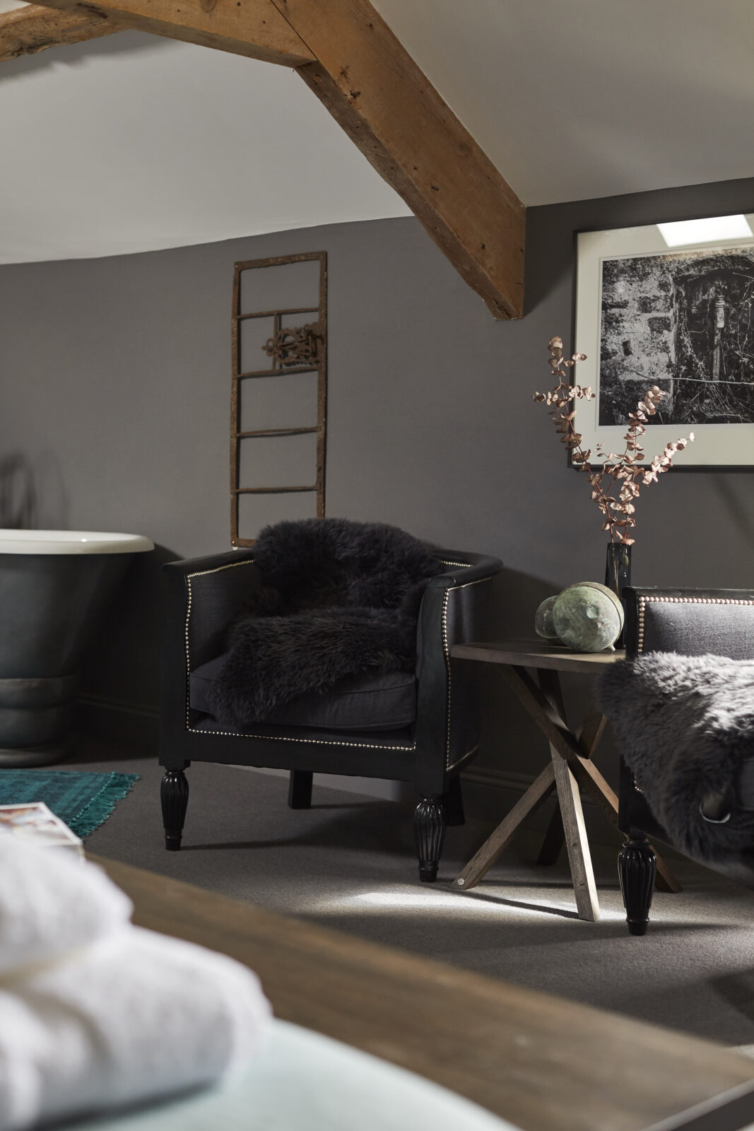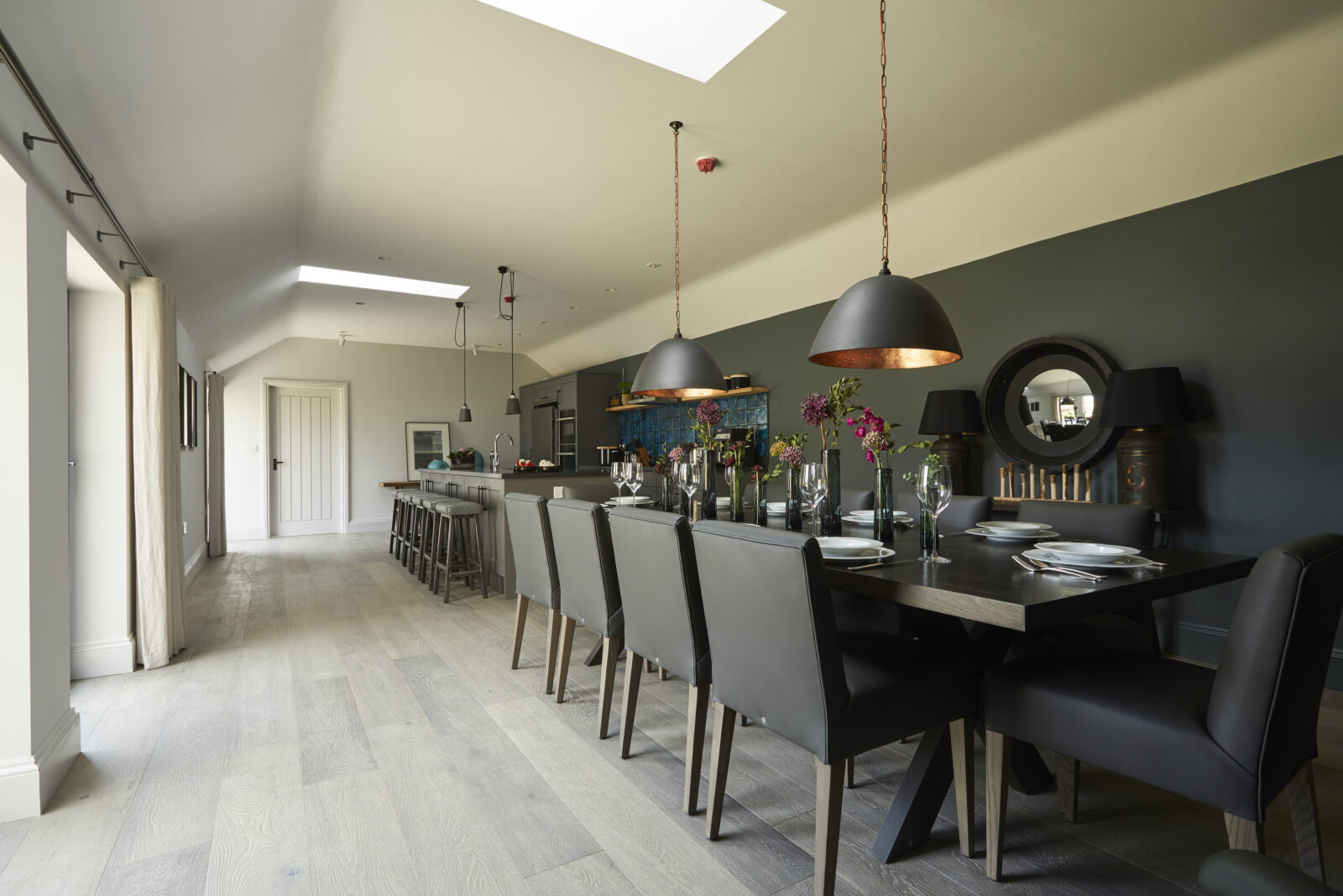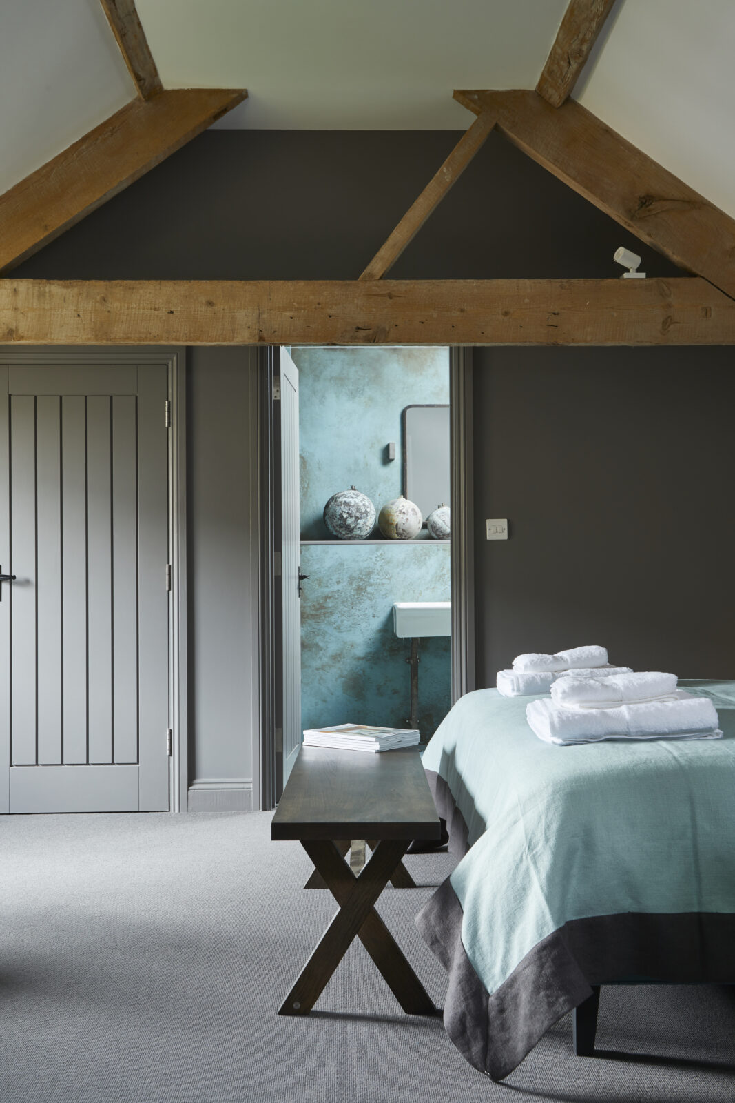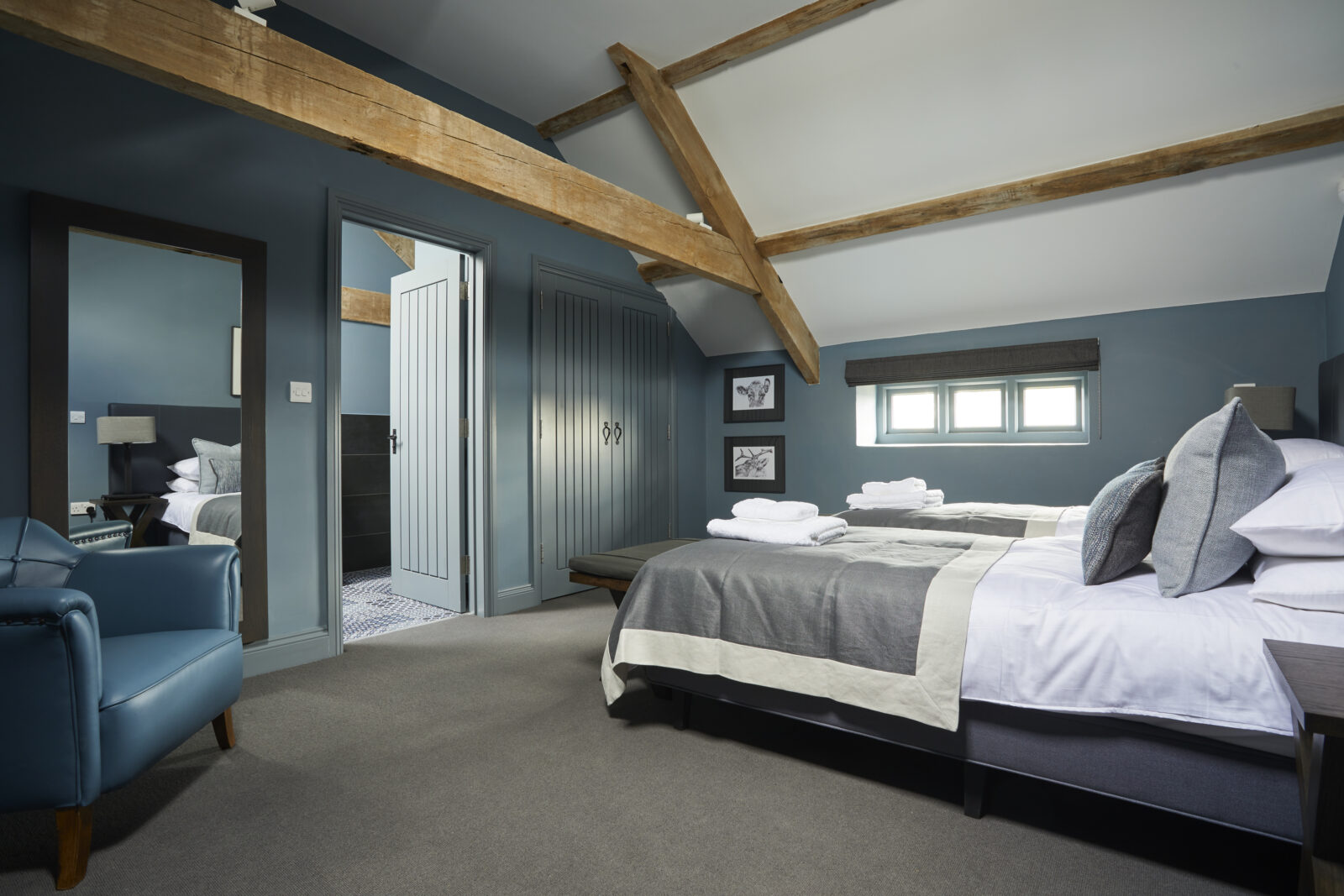 Deep in its colour palette and spacious in its design, The Stables is a luxury barn in Bibury, the Cotswolds, that sleeps 8 and makes the perfect countryside escape for a family or a get together with your favourite folk. Adjoined to neighbouring Bull Pen, The Stables provides a quirky yet luxury hideaway for large groups.