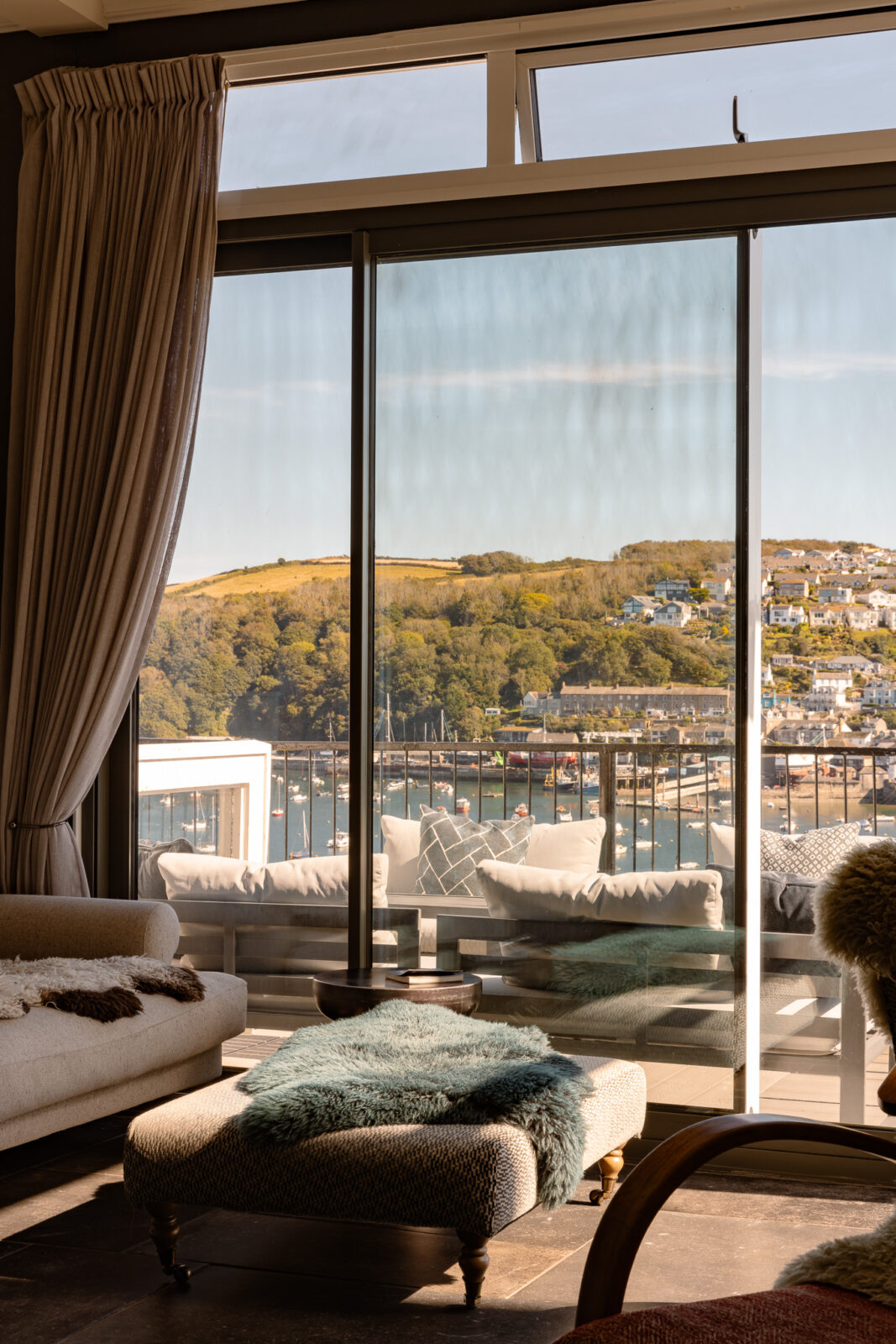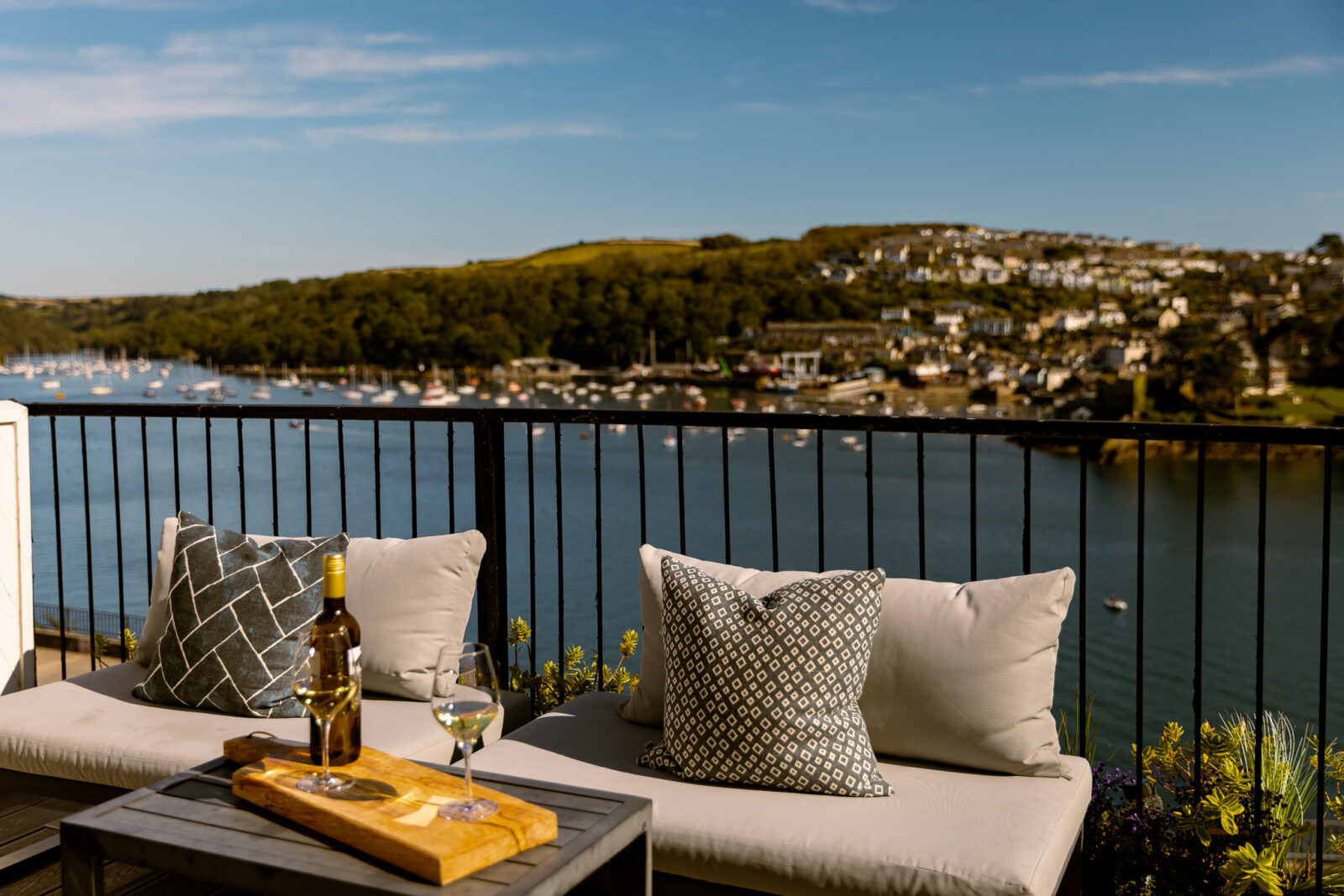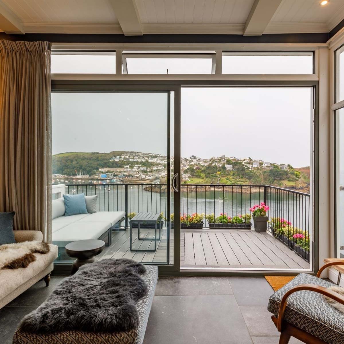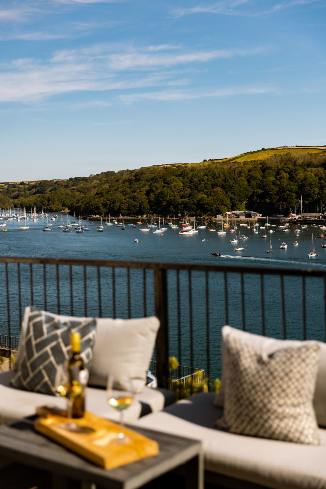 White Rock is a stylish, luxury apartment sitting above the beautiful Fowey Estuary, with wide sweeping views over the water, passing boats and the pretty fishing village of Polruan.