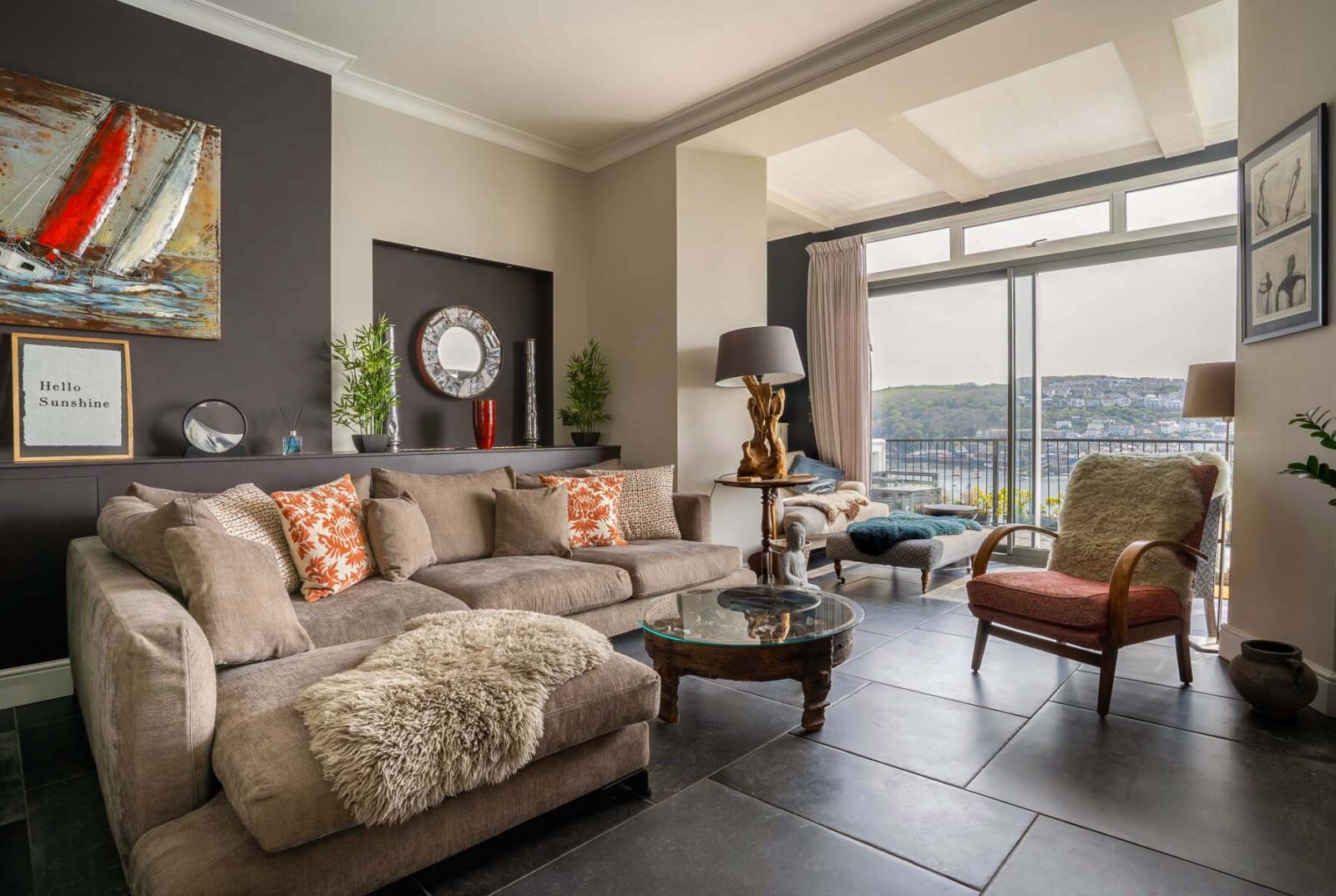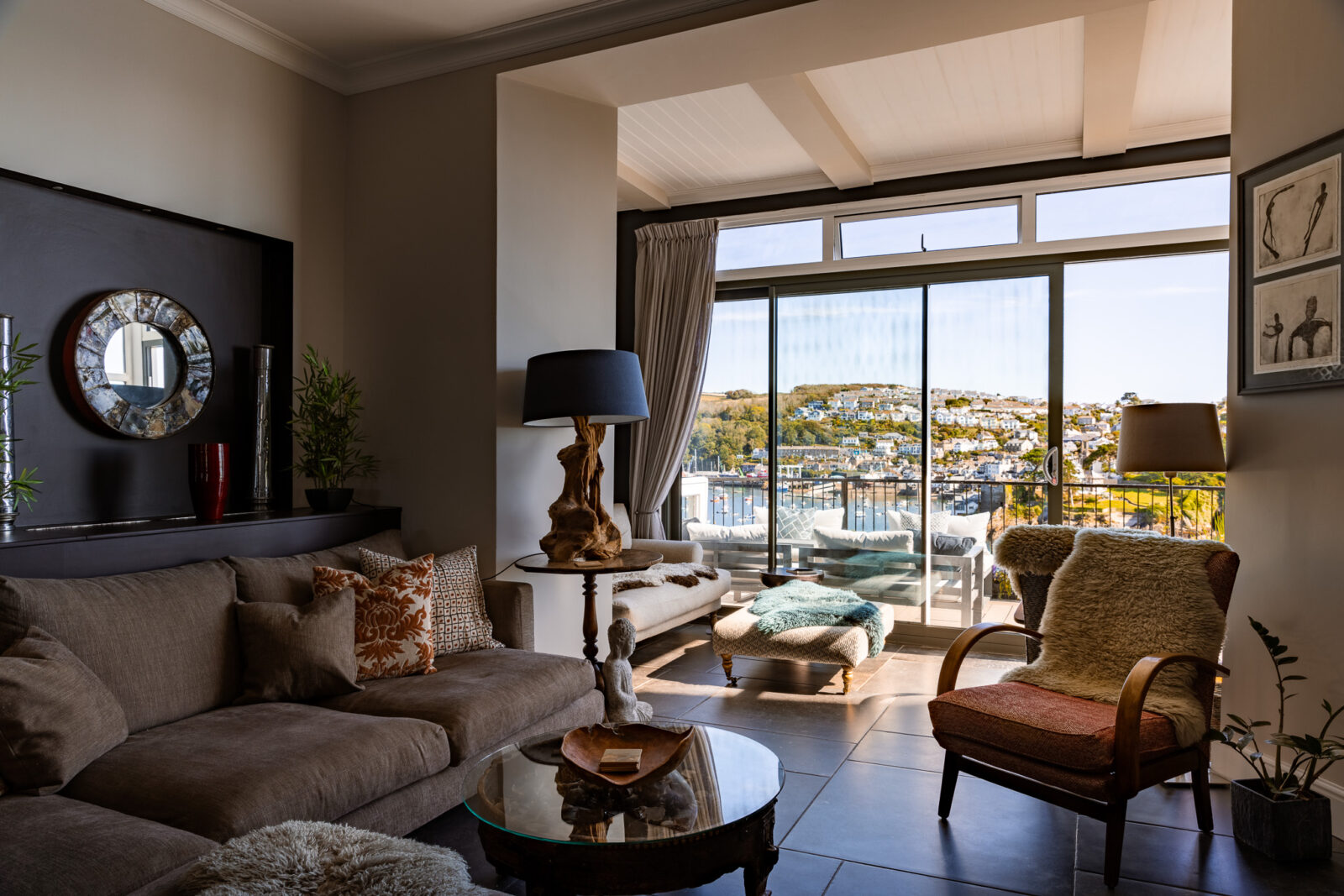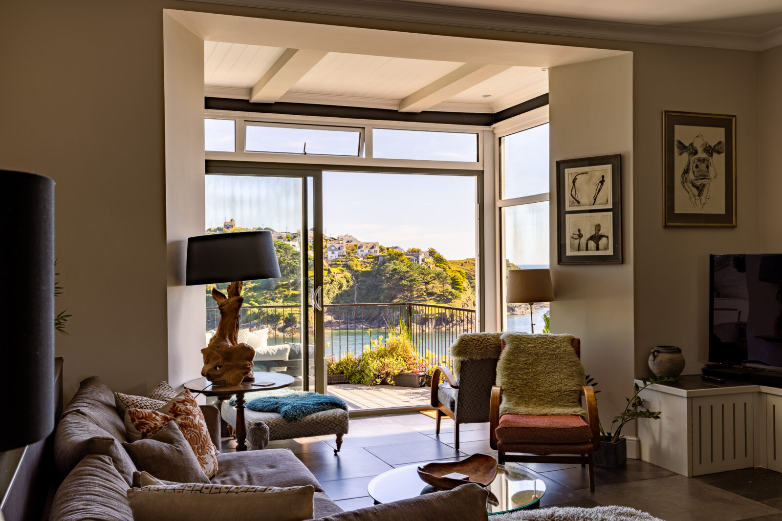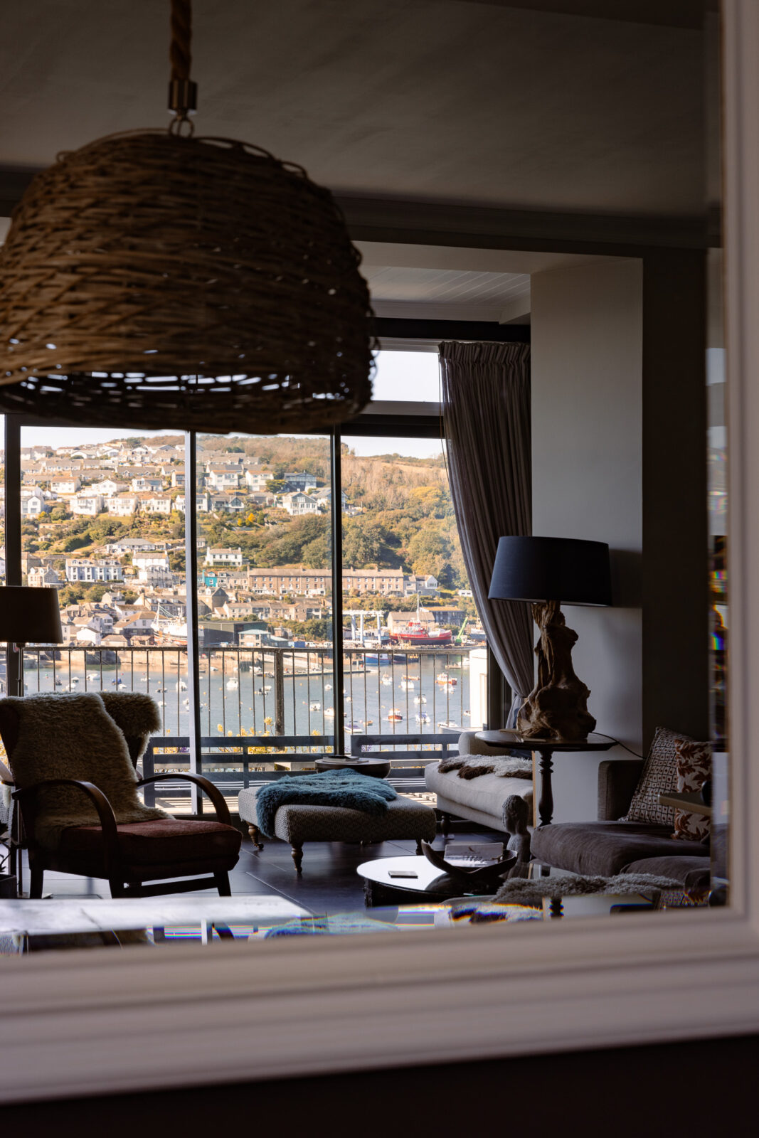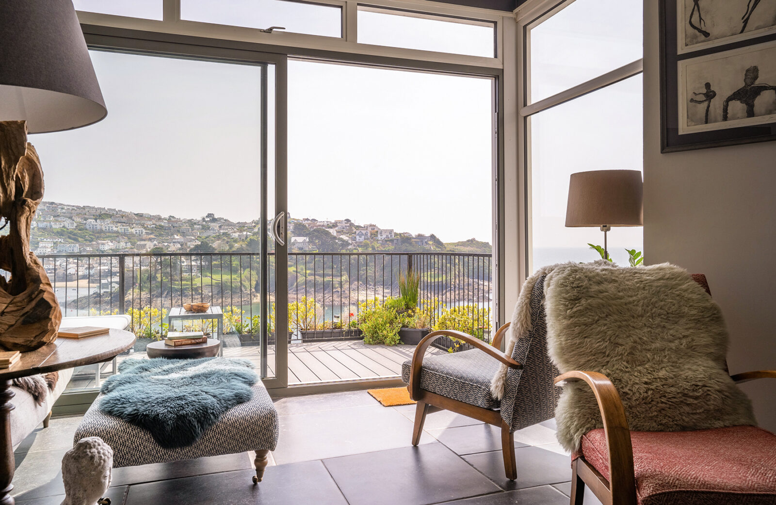 White Rock is a stylish, luxury apartment sitting above the beautiful Fowey Estuary, with wide sweeping views over the water, passing boats and the pretty fishing village of Polruan.