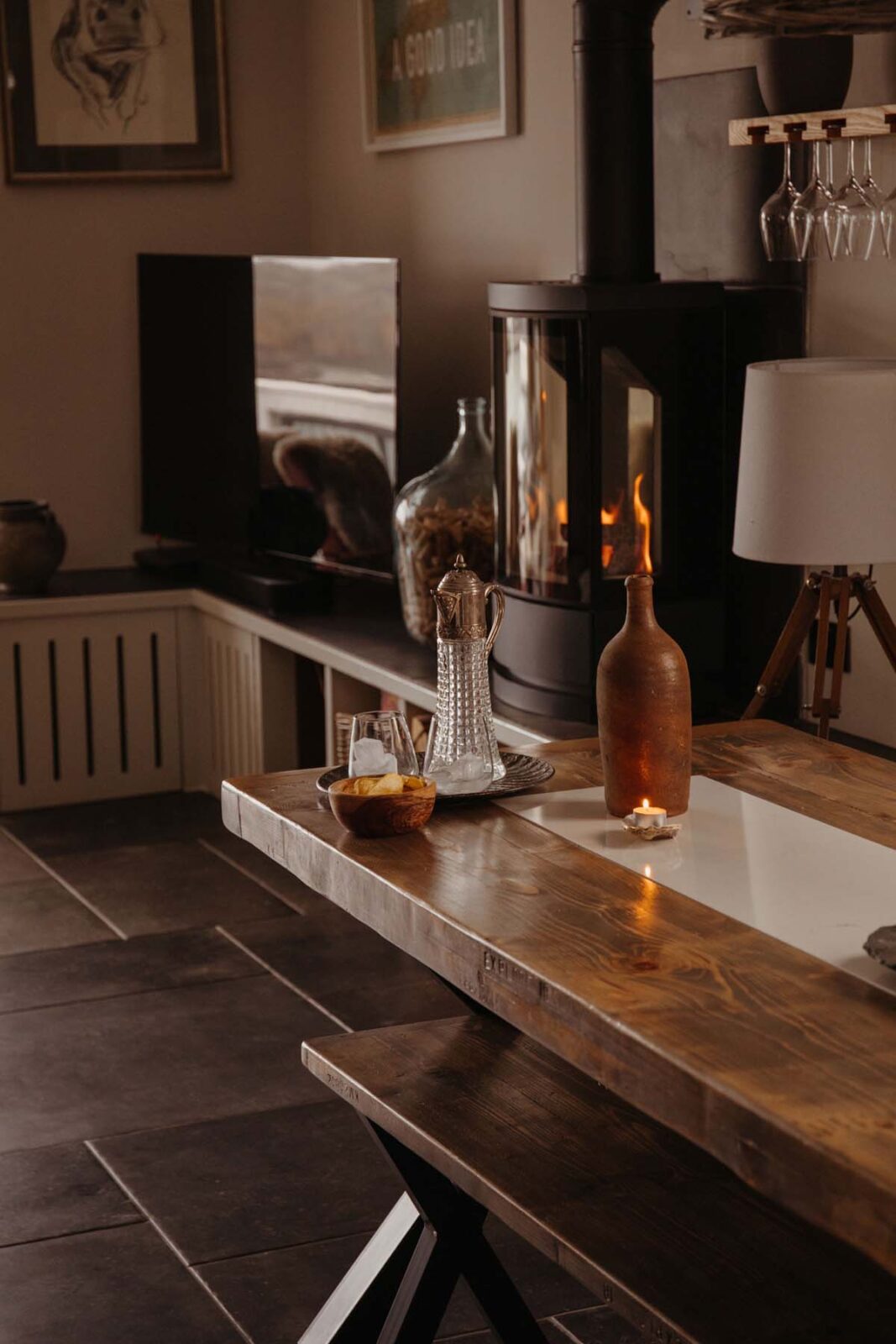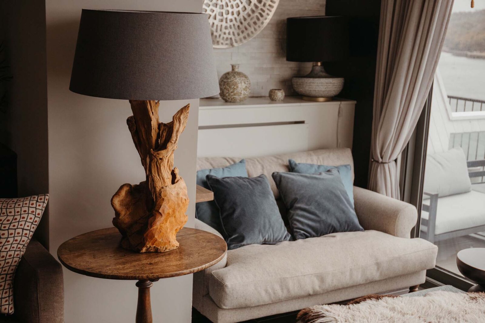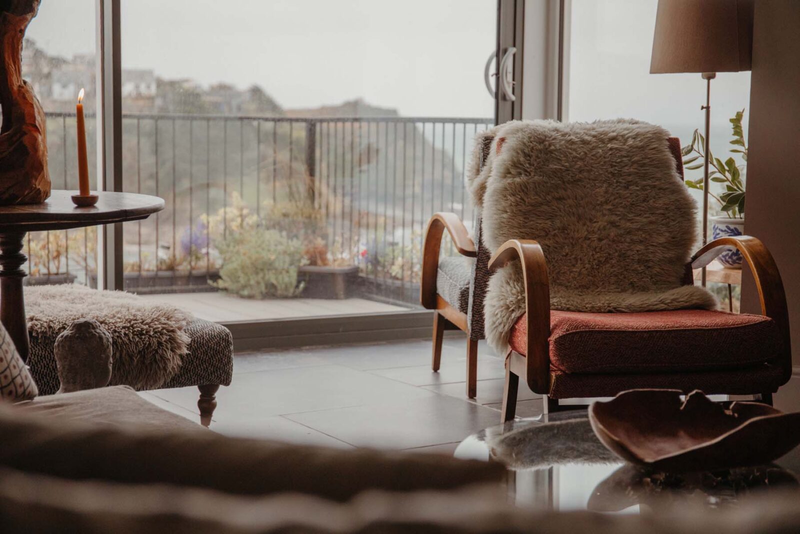 The apartment has an open-plan living area and kitchen with amazing direct views onto the Estuary. There is a private balcony with seating area, a perfect place to enjoy sundowners looking at the water in front. The cosy living space has a gas log burner for those chillier nights, and the dining area, seating six, is perfect for home-cooked feasts for a family or group of friends.