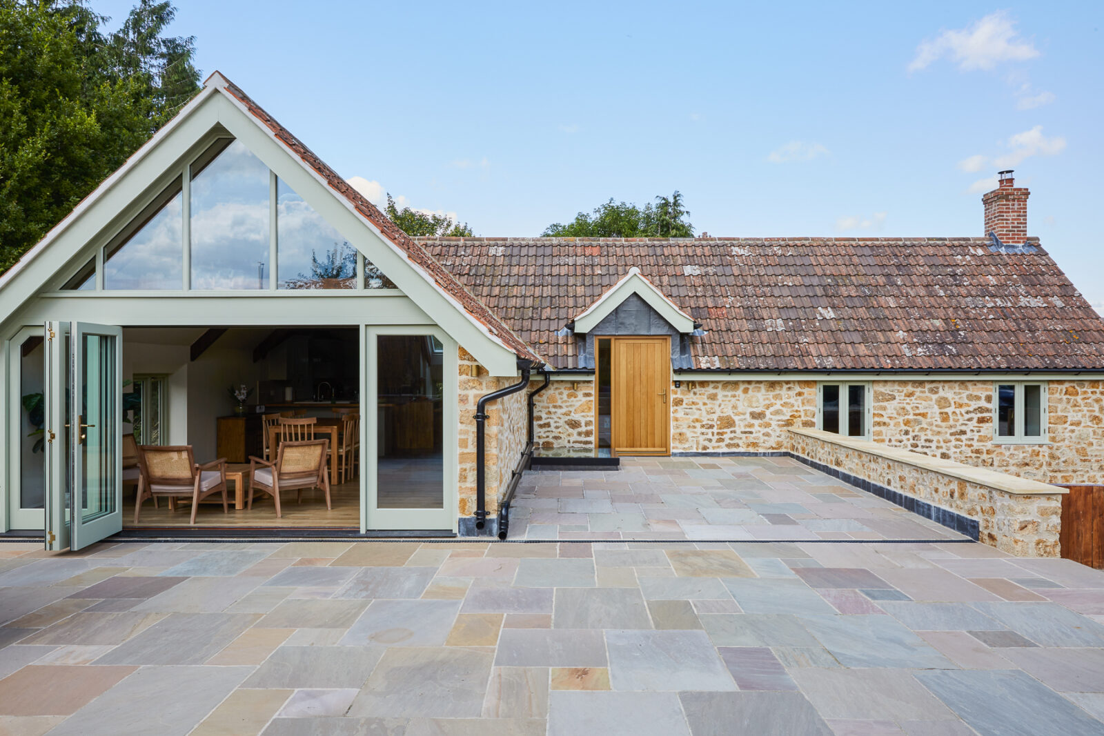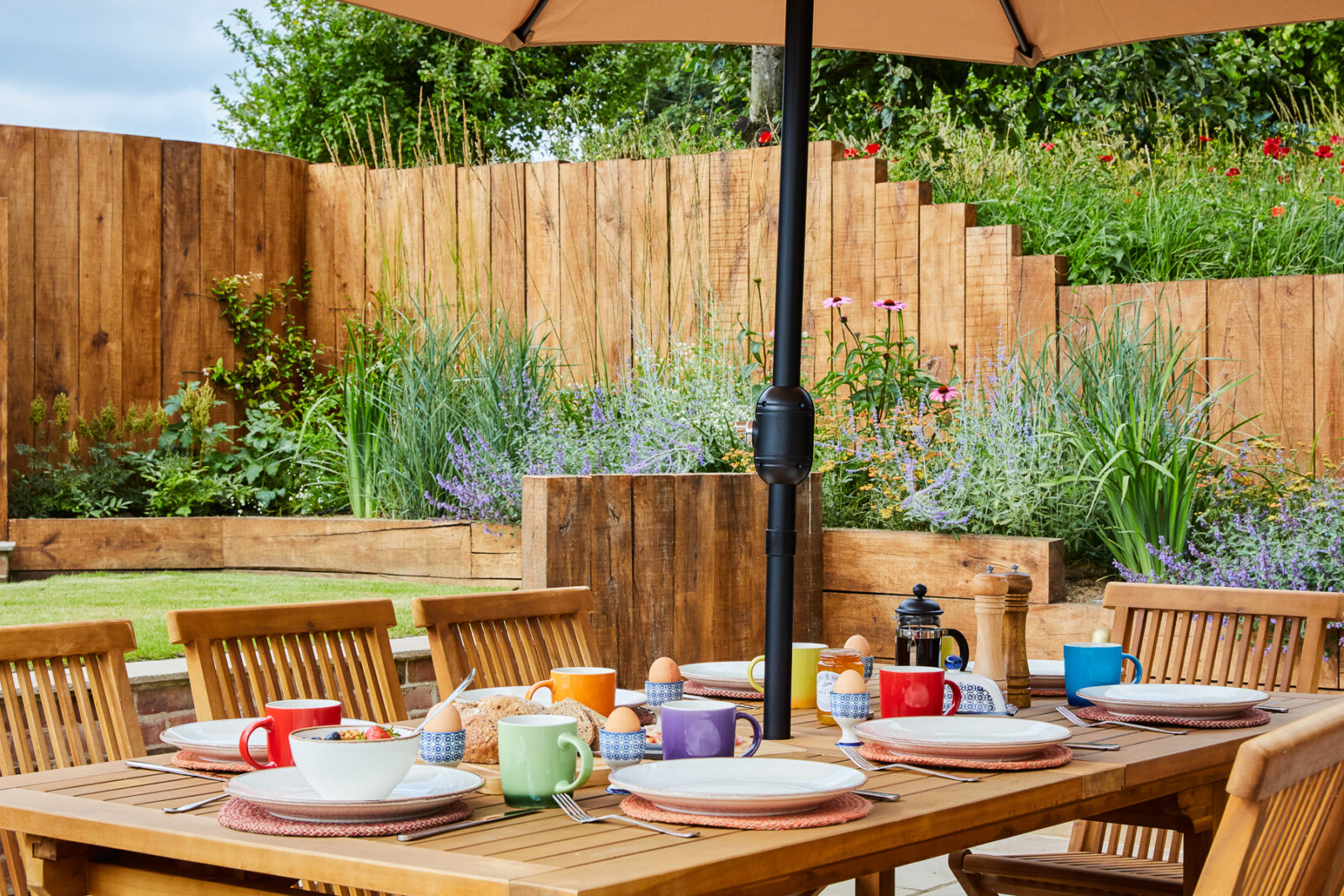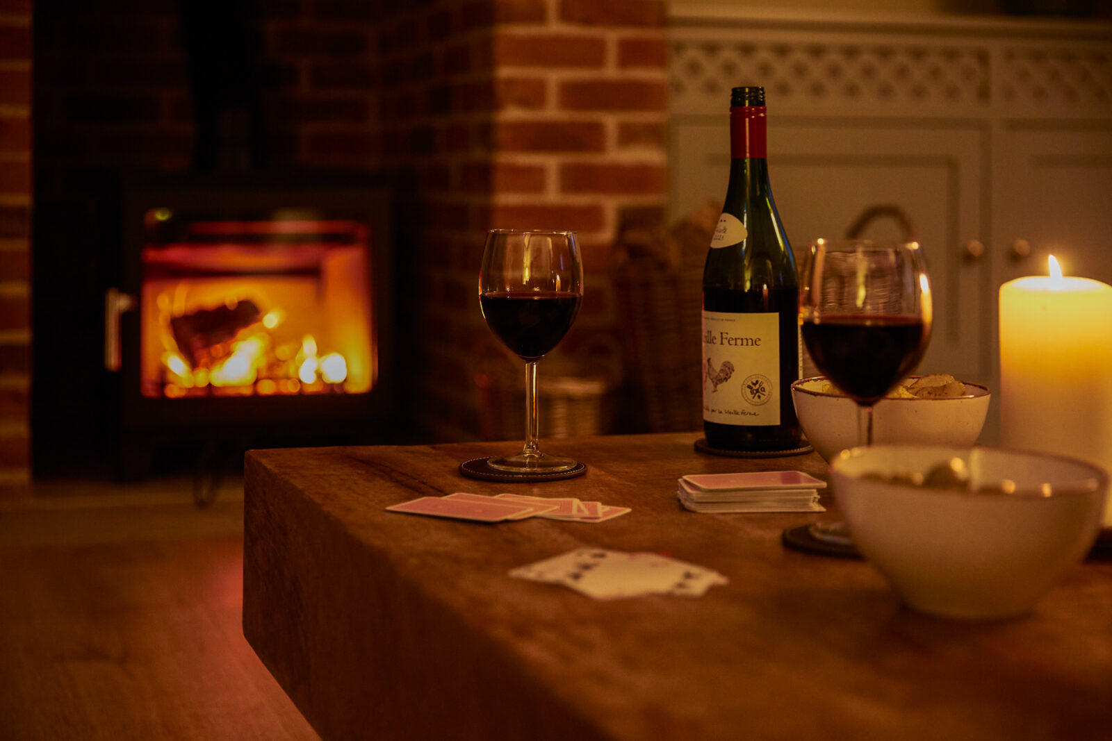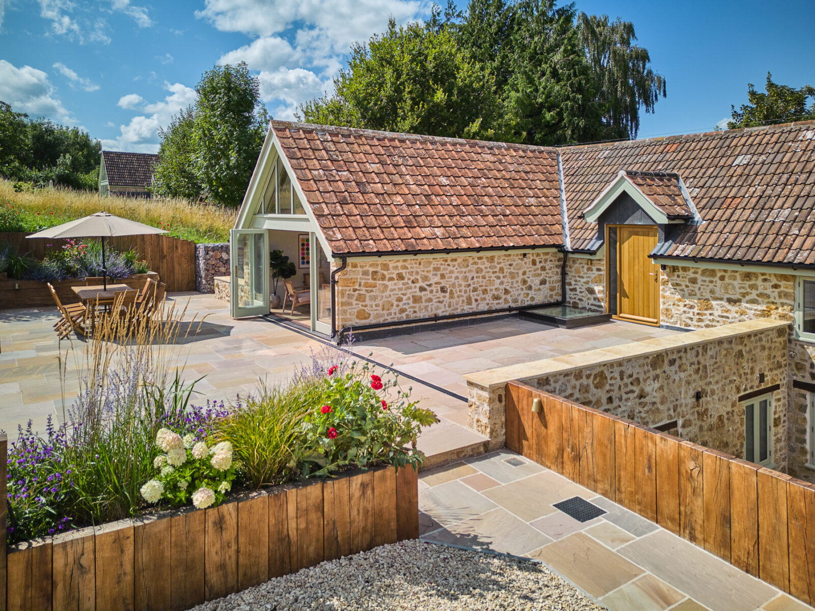 There’s a patio terrace with an outdoor dining set up with a parasol, perfect for balmy days, plus a charcoal BBQ, so you can roll into the night. You’ll also find an outdoor sofa for soaking up those pretty pastoral views with a sunny afternoon tipple.