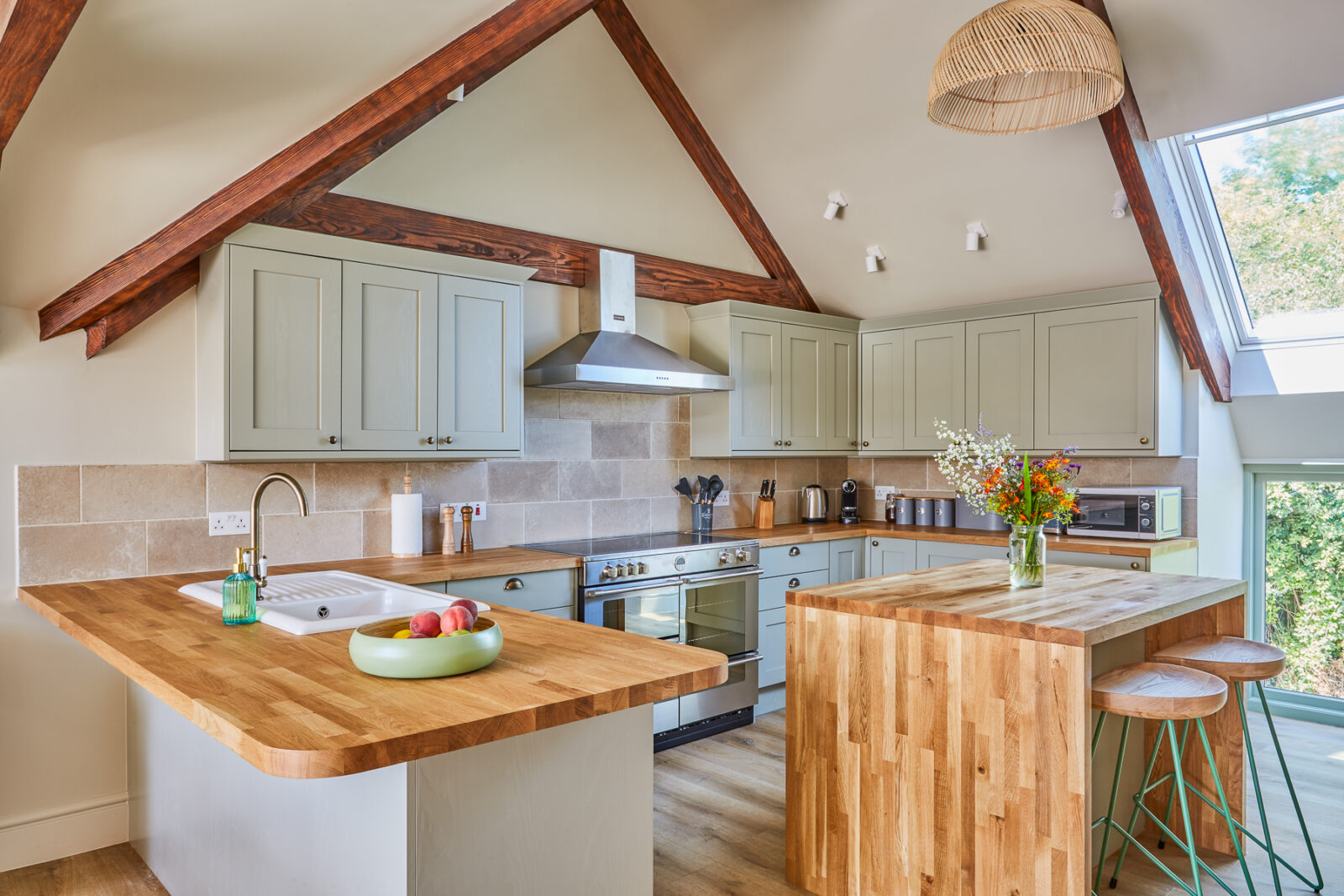 Downstairs, you’ll find the four en-suite bedrooms – all beautifully designed with an inviting yet luxurious country cottage style. And conveniently, all of the rooms can be set up as either twins or super-king doubles (just let us know upon booking).